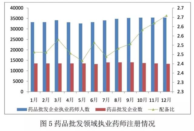 注冊于藥品批發(fā)企業(yè)35434人,環(huán)比增加20人,配備執(zhí)業(yè)藥師的藥品批發(fā)企業(yè)13326家,配備比達(dá)到2.7。