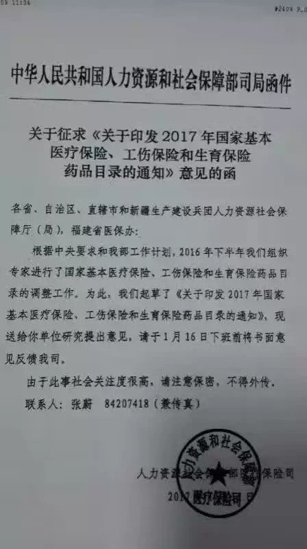 據(jù)微信朋友圈流傳信息,關(guān)于印發(fā)2017年版國(guó)家醫(yī)保藥品目錄的通知已經(jīng)下發(fā)各省,要求各省在1月16日前上報(bào)回饋意見。有知情人士表示,這應(yīng)該是新版醫(yī)保目錄的最后一輪征求意見。