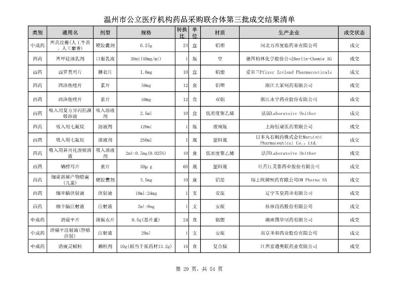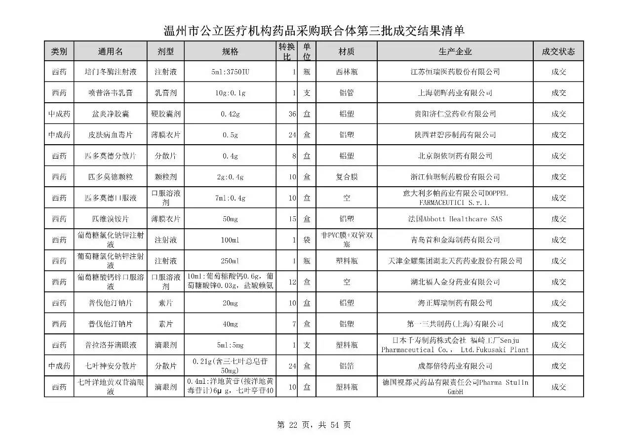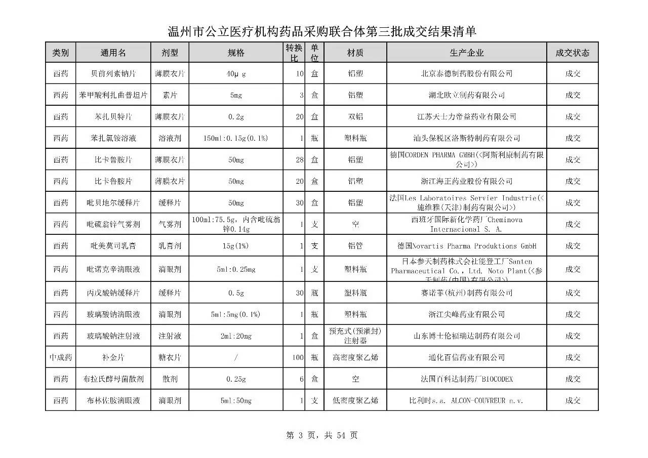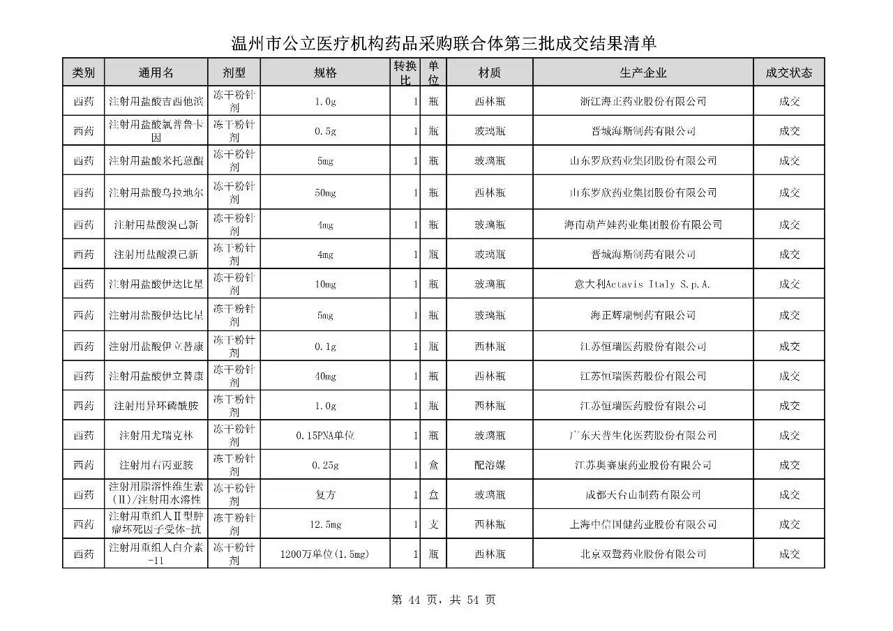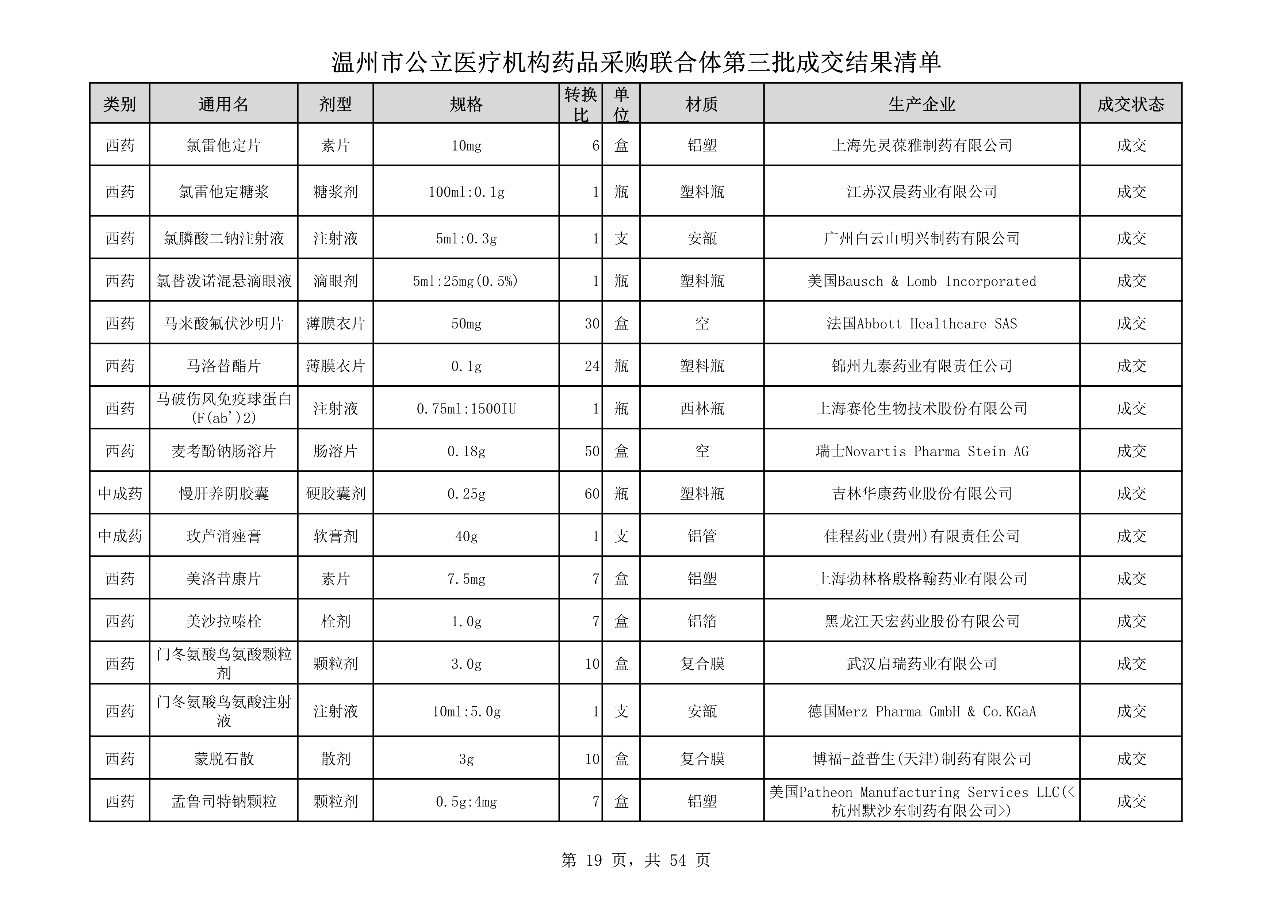 重磅:溫州市公立醫(yī)療機(jī)構(gòu)藥品采購(gòu)聯(lián)合體第三批采購(gòu)的成交結(jié)果公告
