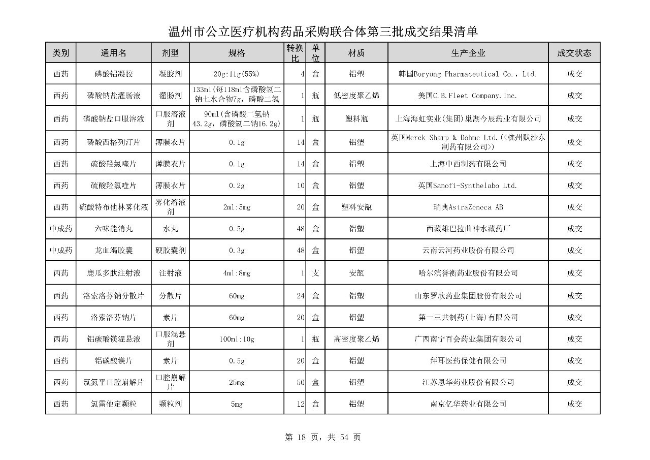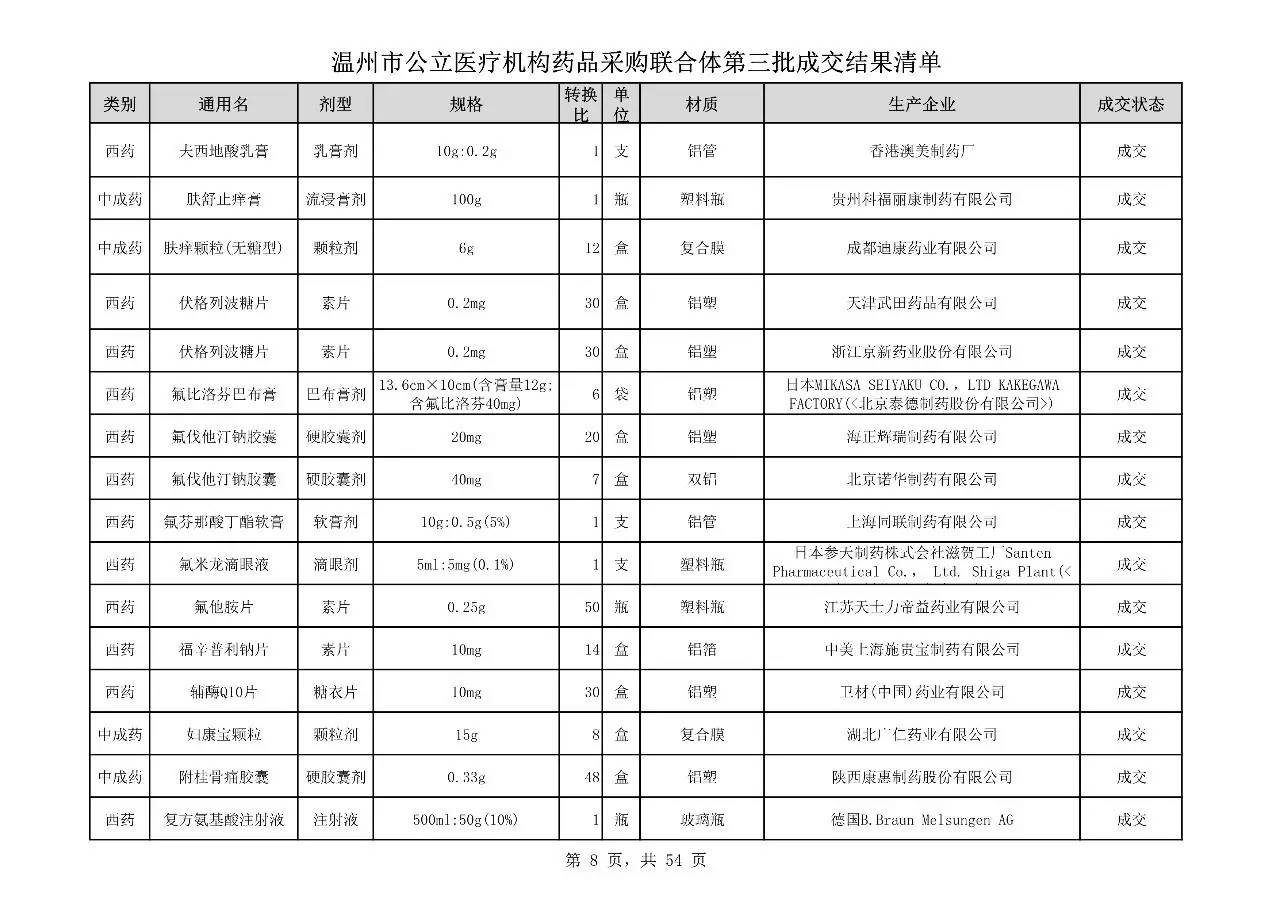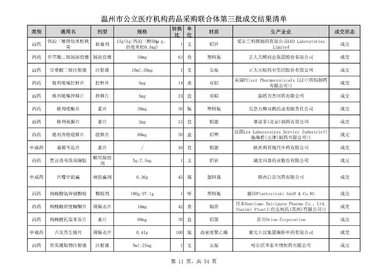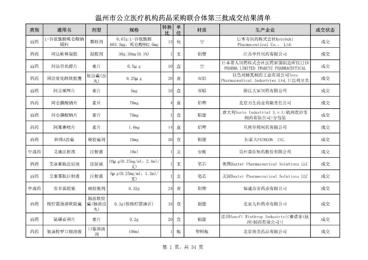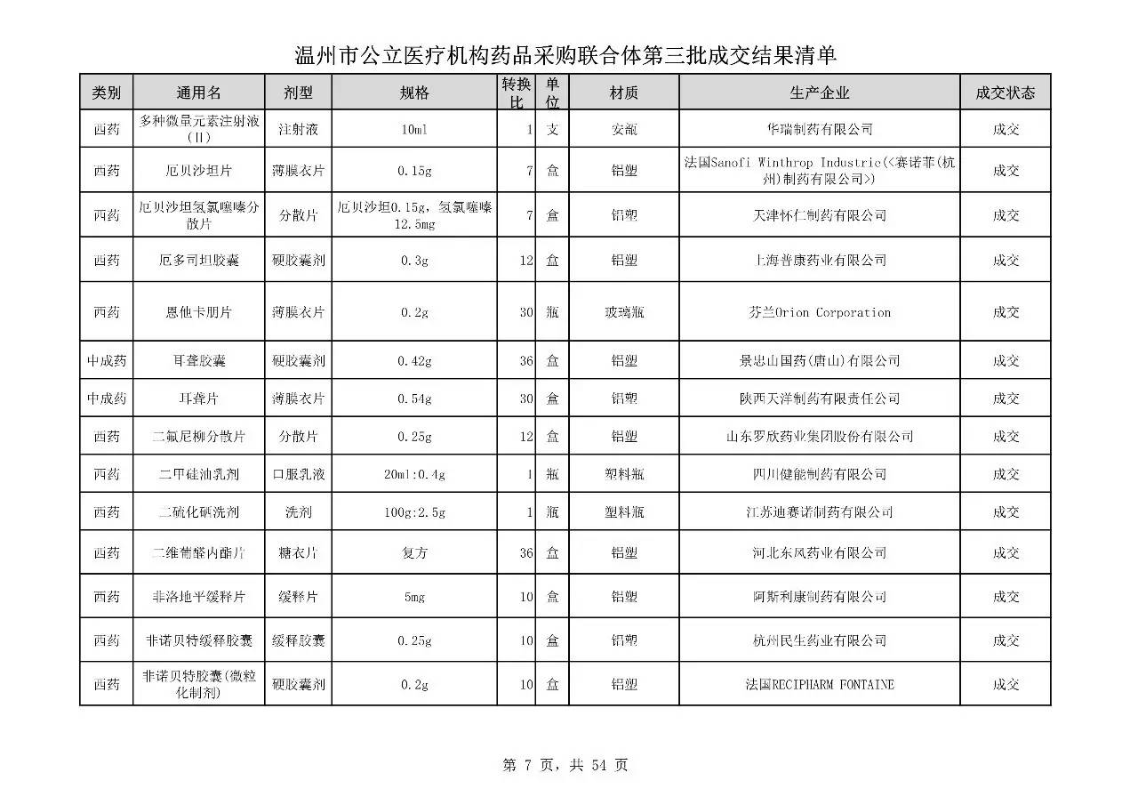 重磅:溫州市公立醫(yī)療機(jī)構(gòu)藥品采購(gòu)聯(lián)合體第三批采購(gòu)的成交結(jié)果公告