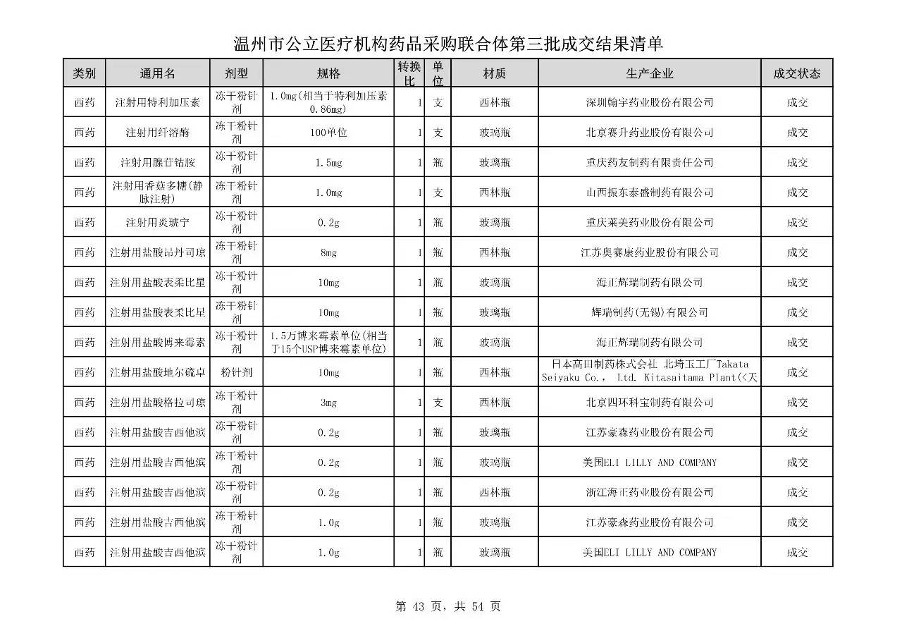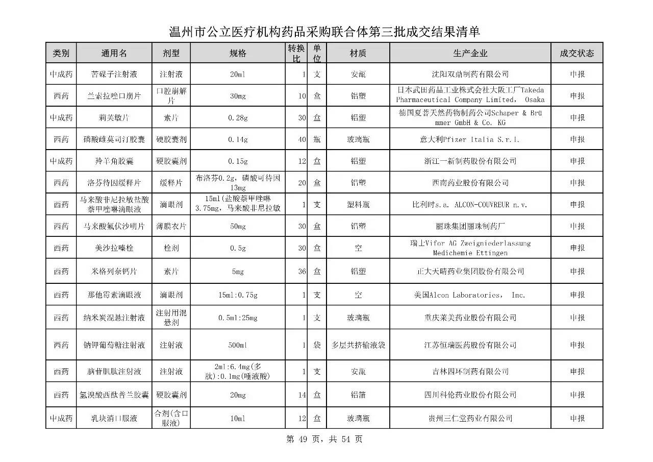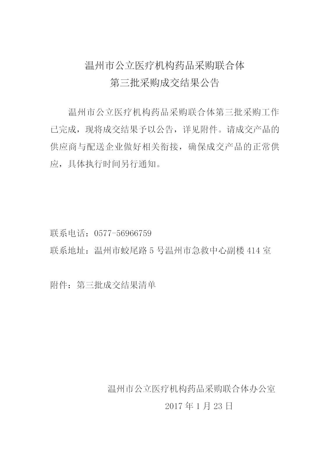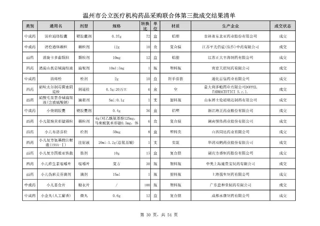 重磅:溫州市公立醫(yī)療機(jī)構(gòu)藥品采購(gòu)聯(lián)合體第三批采購(gòu)的成交結(jié)果公告