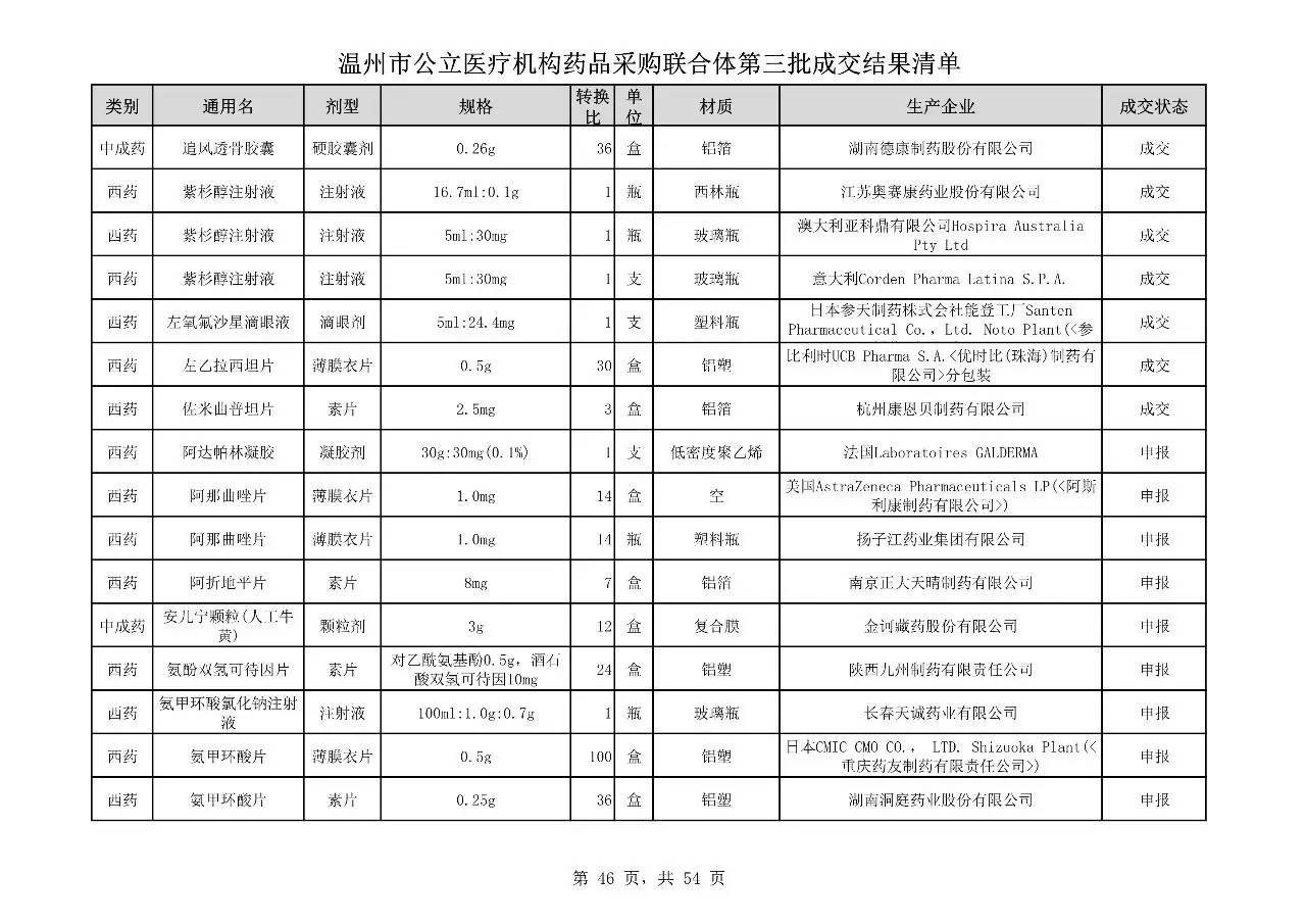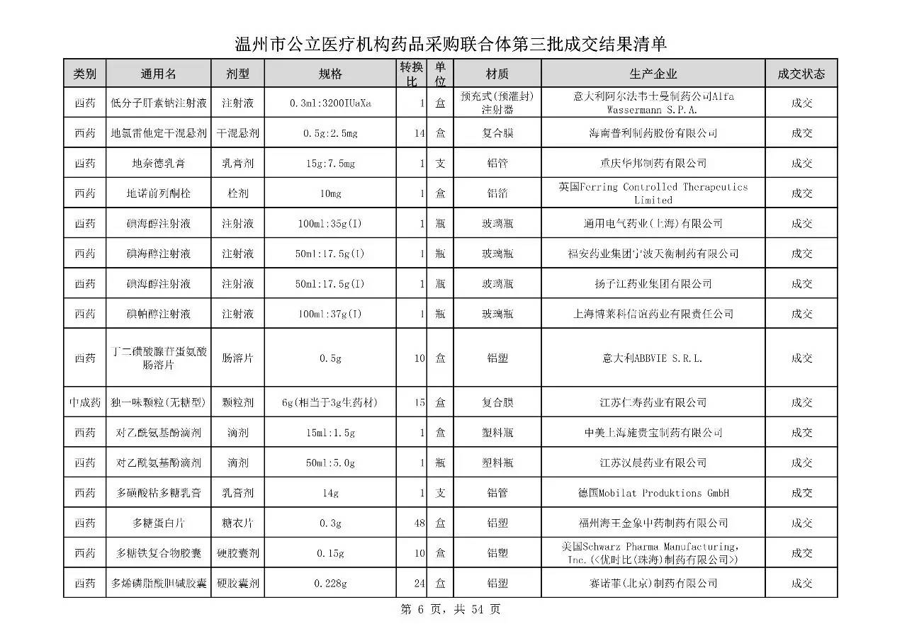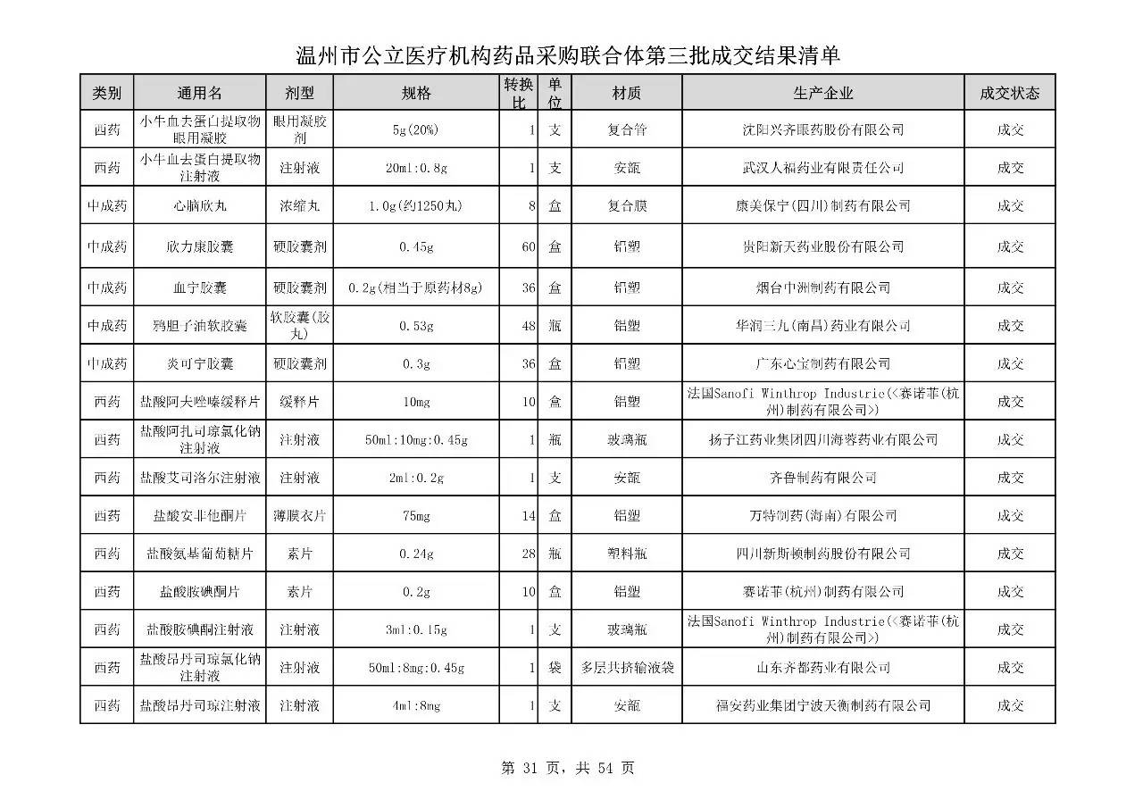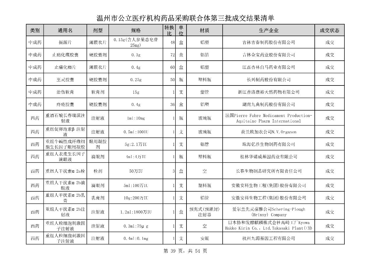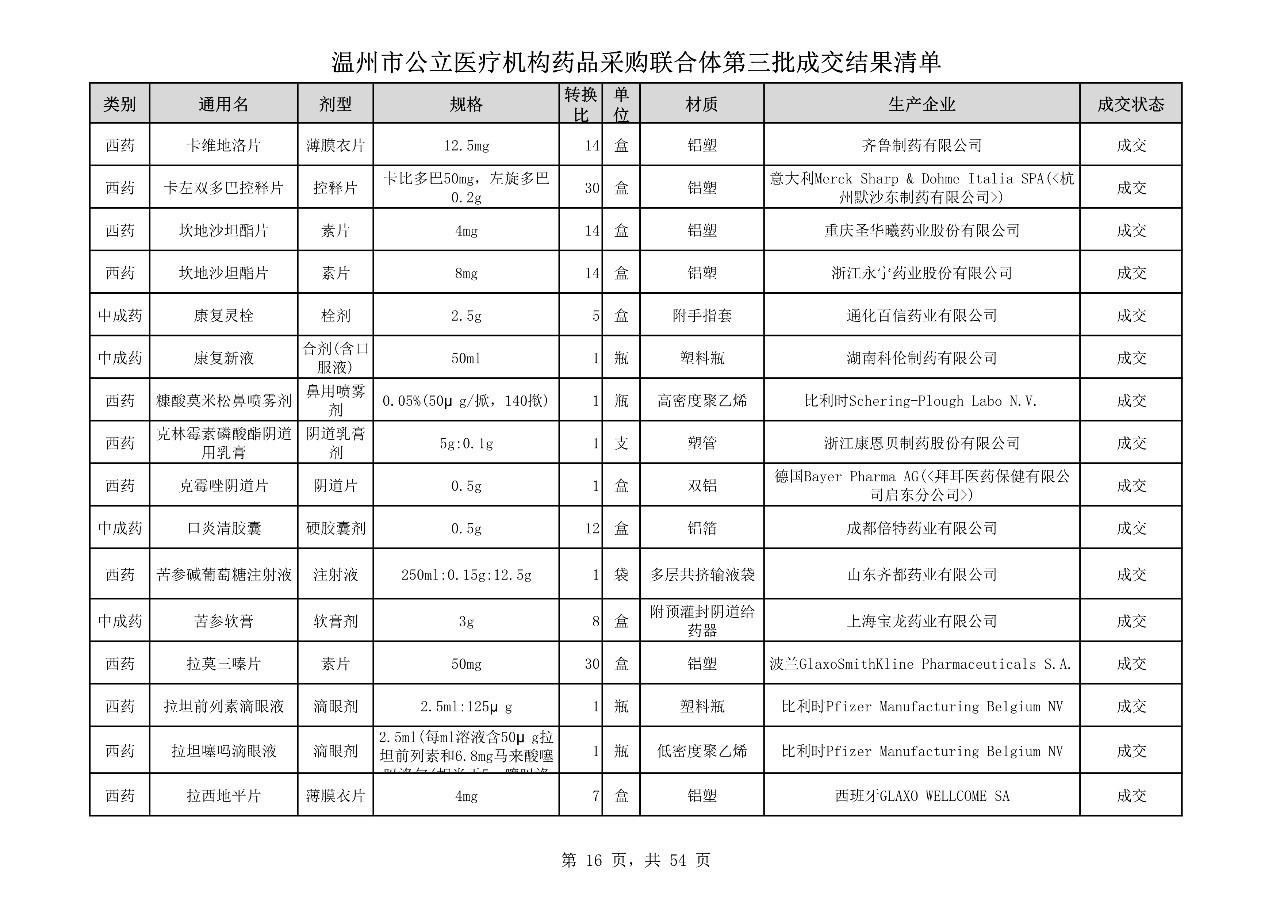 重磅:溫州市公立醫(yī)療機(jī)構(gòu)藥品采購(gòu)聯(lián)合體第三批采購(gòu)的成交結(jié)果公告