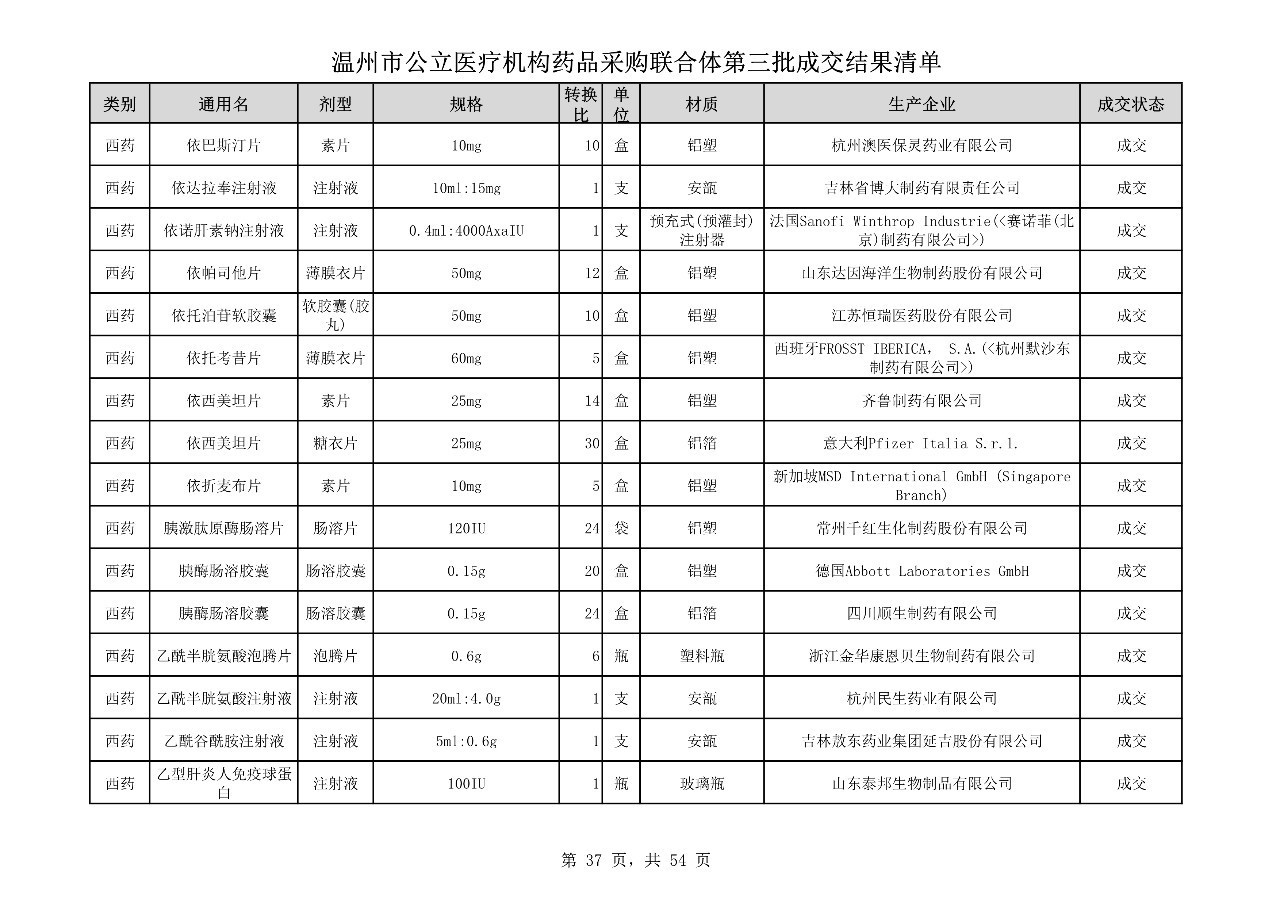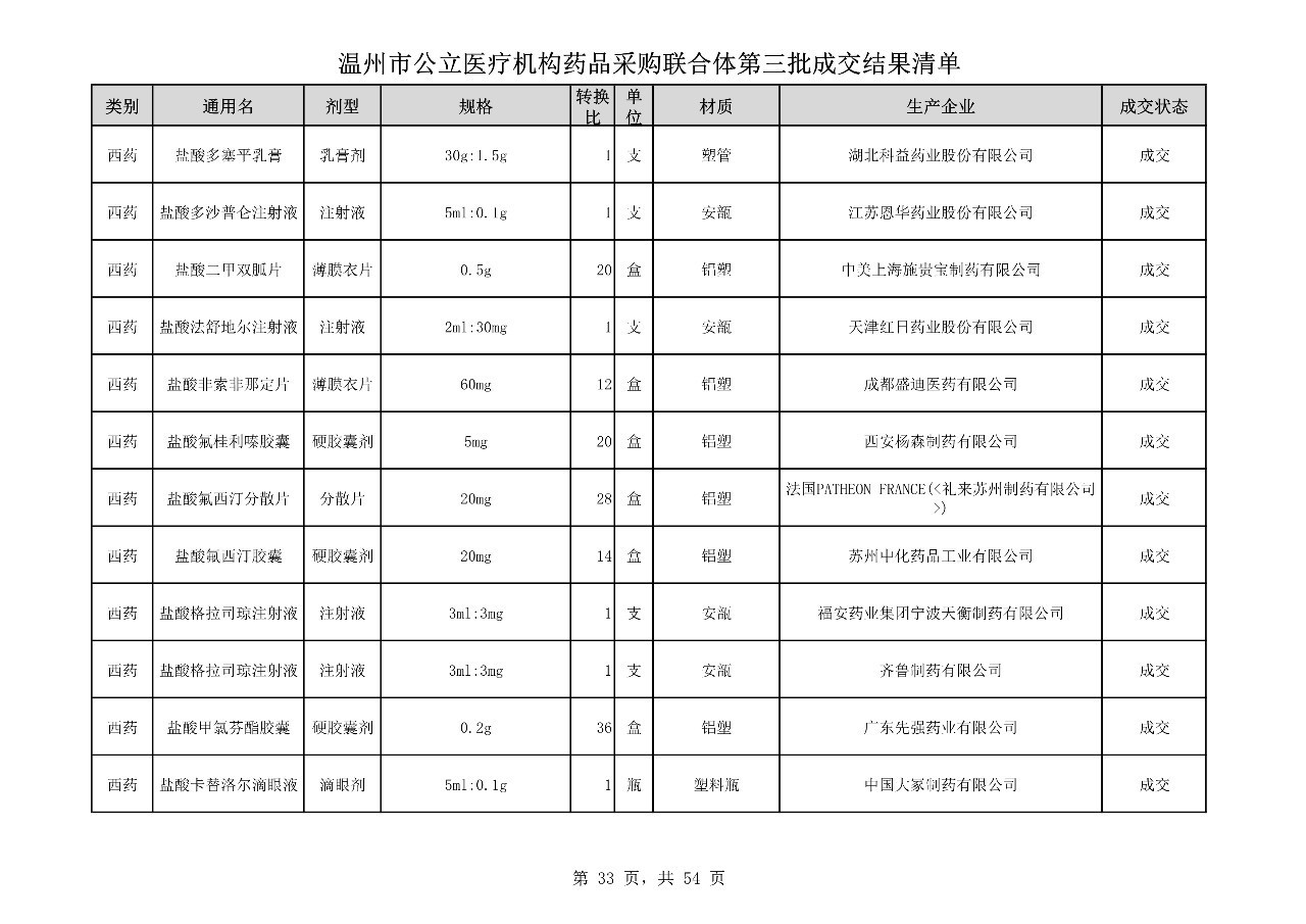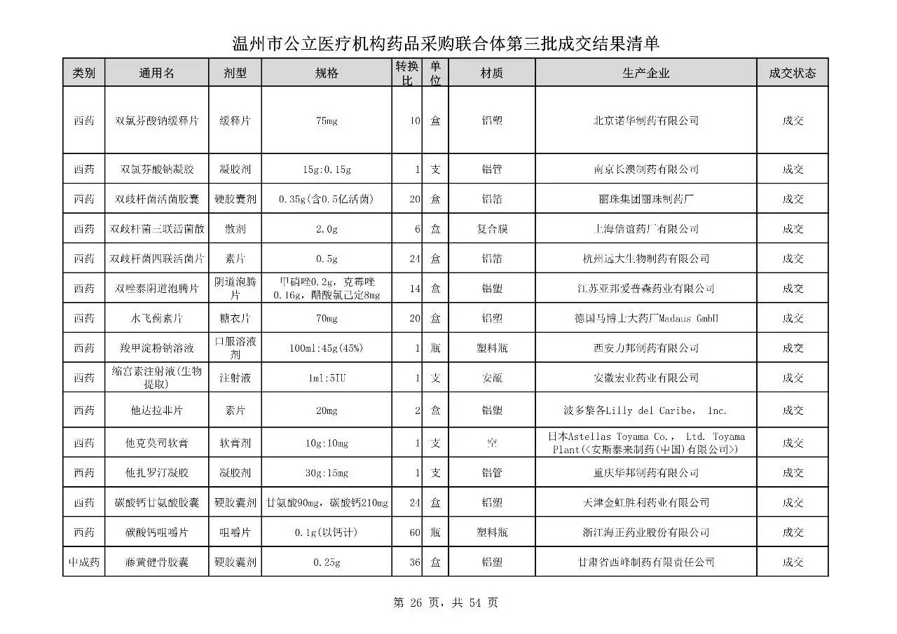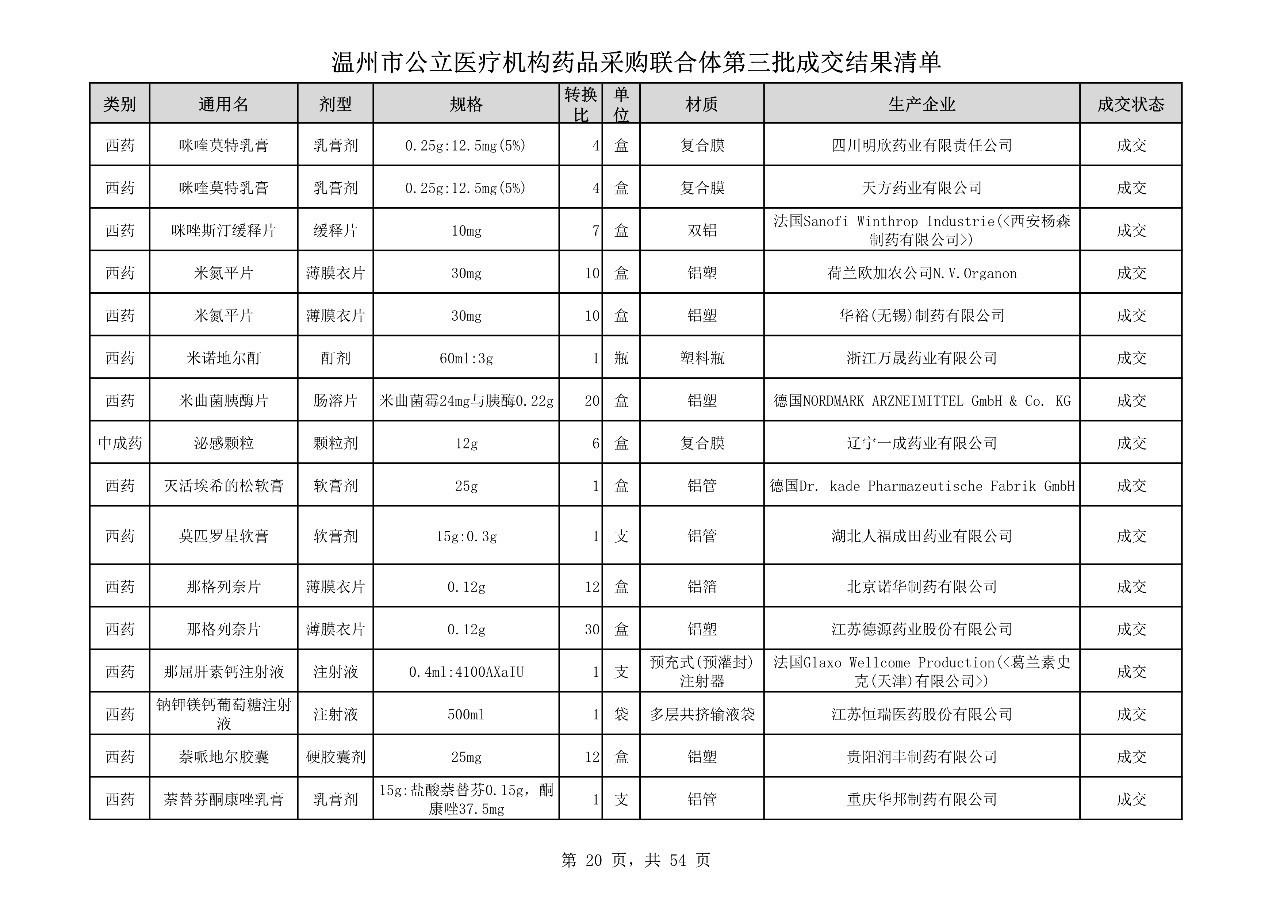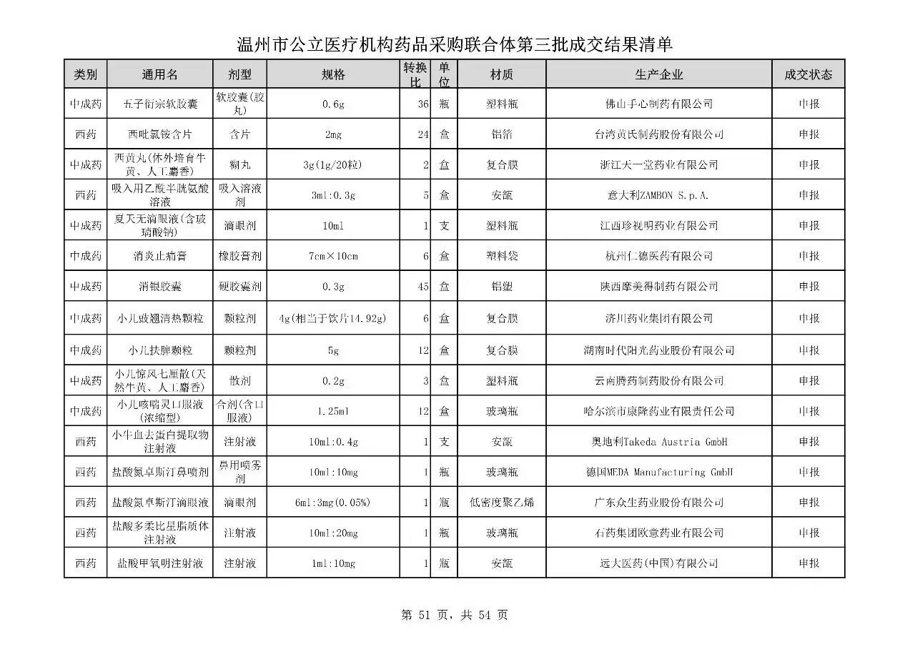 重磅:溫州市公立醫(yī)療機(jī)構(gòu)藥品采購(gòu)聯(lián)合體第三批采購(gòu)的成交結(jié)果公告