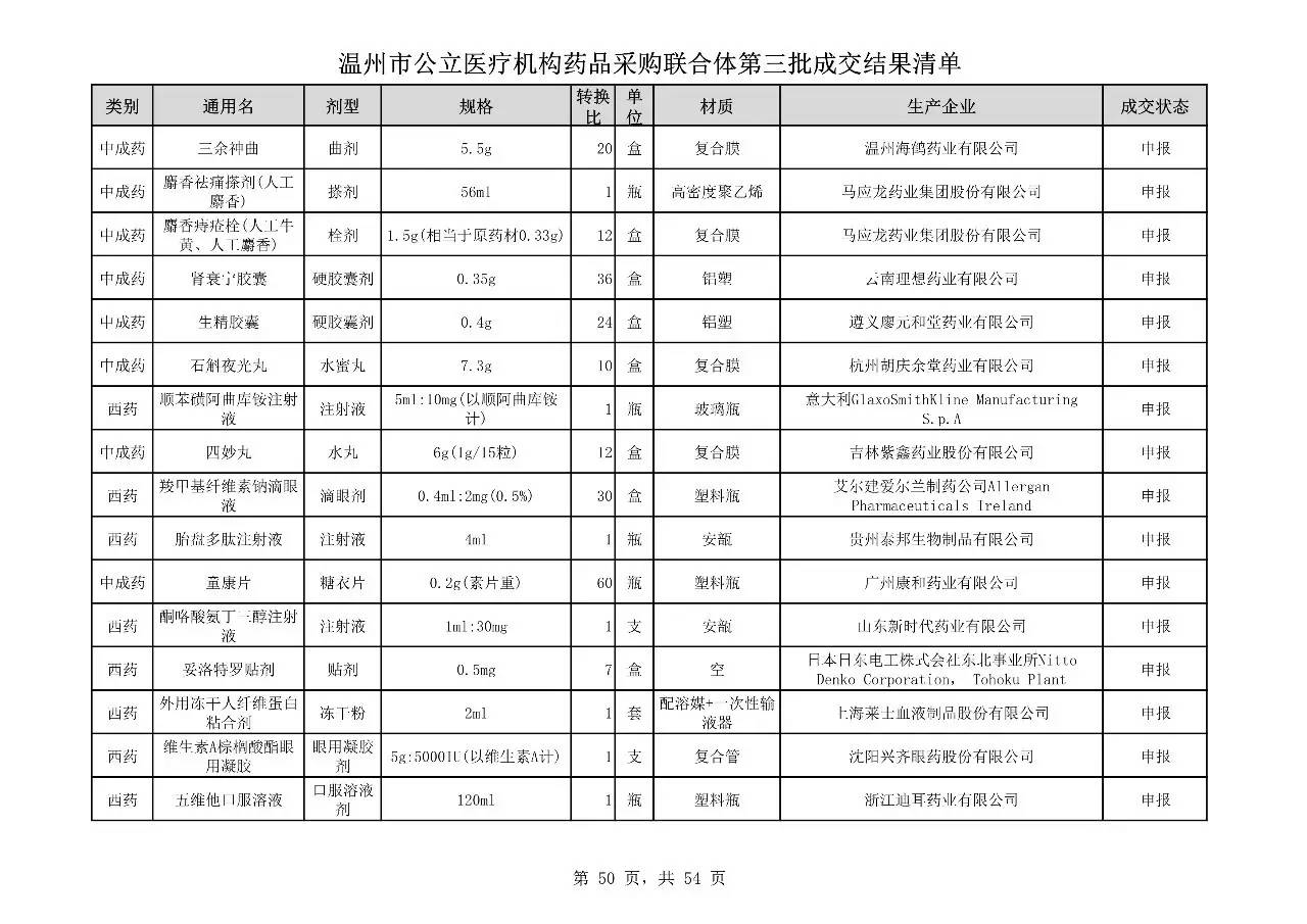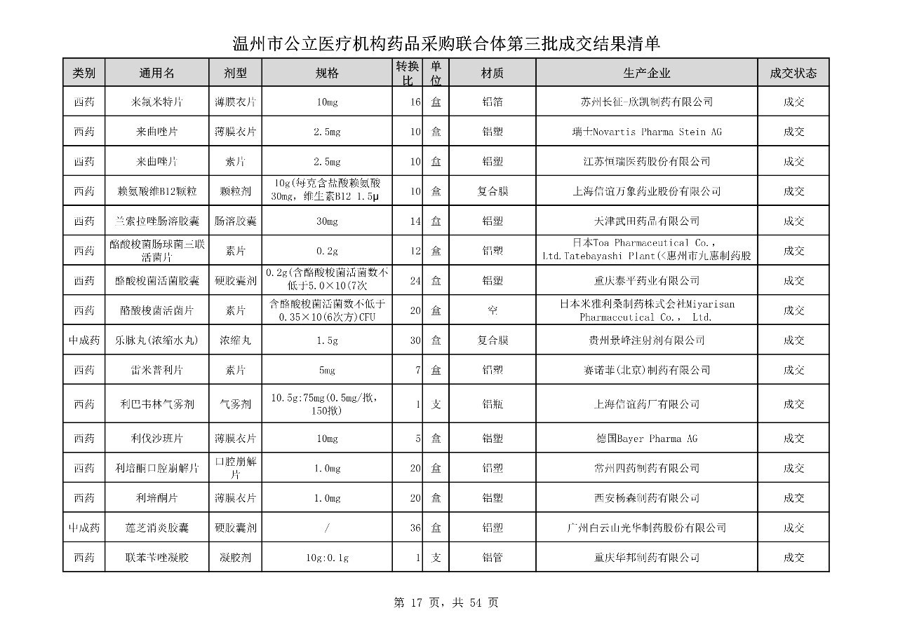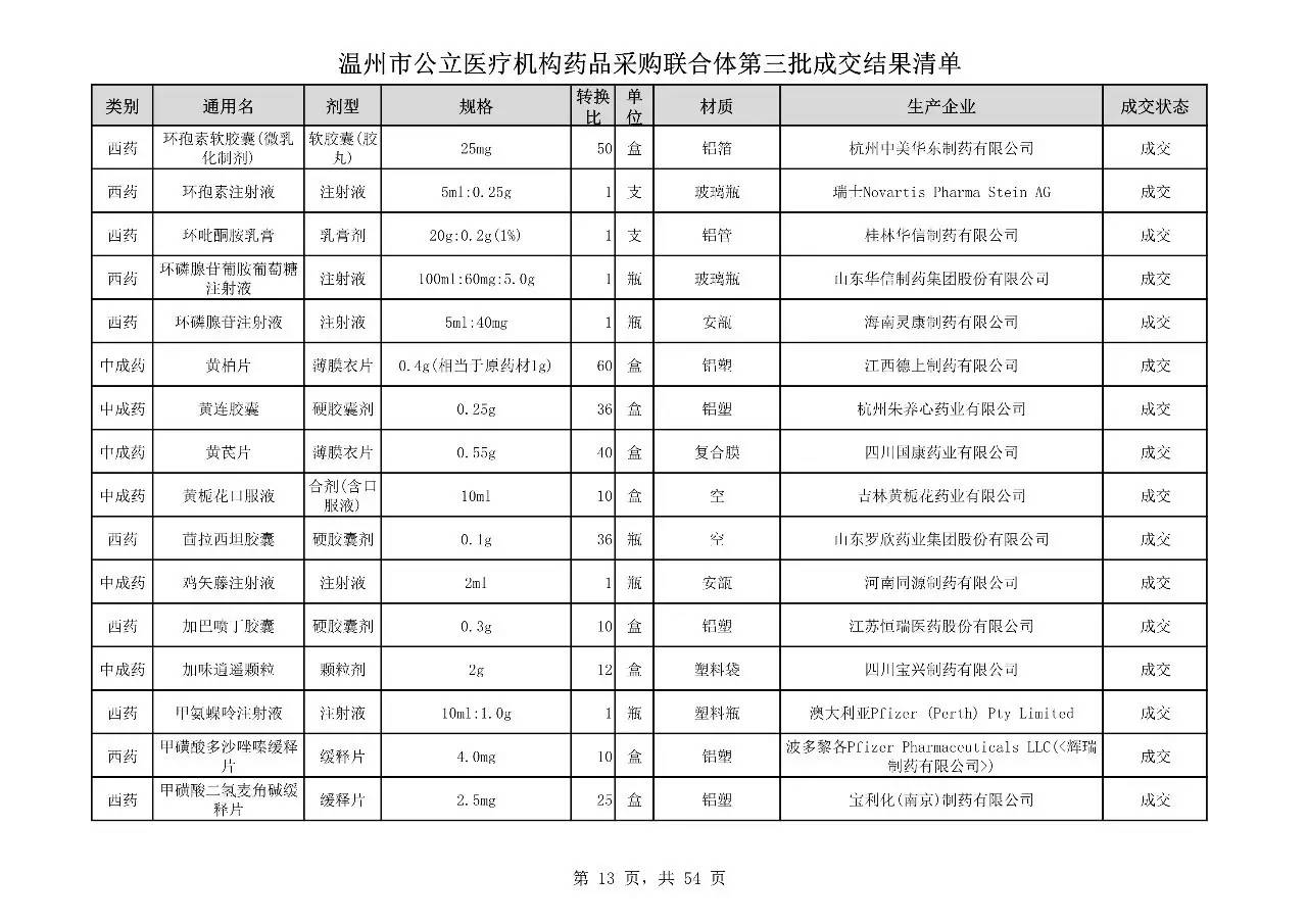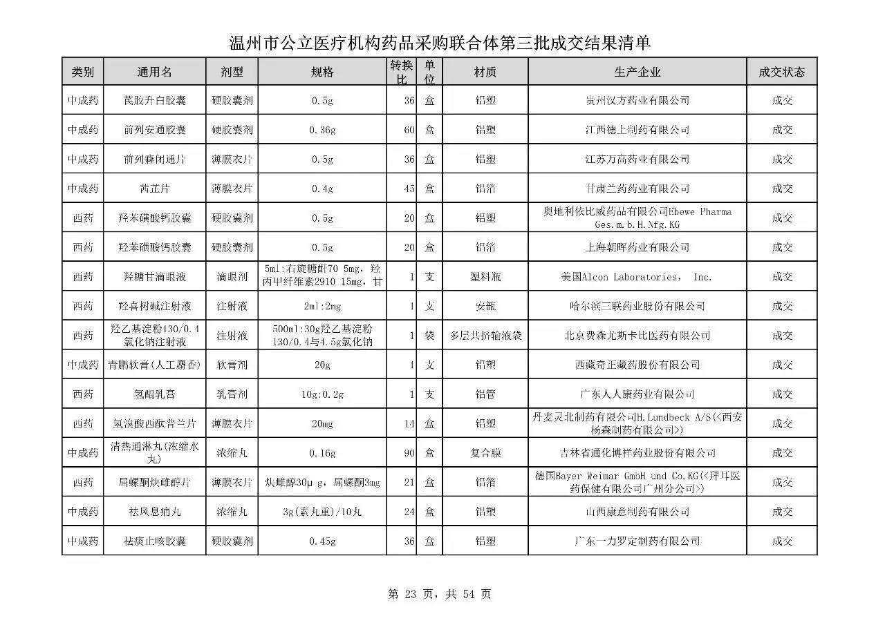 重磅:溫州市公立醫(yī)療機(jī)構(gòu)藥品采購(gòu)聯(lián)合體第三批采購(gòu)的成交結(jié)果公告