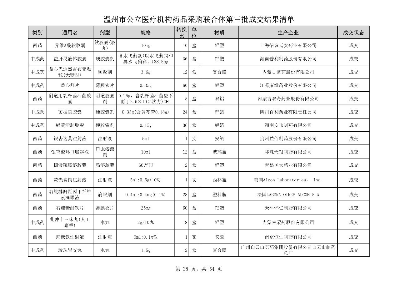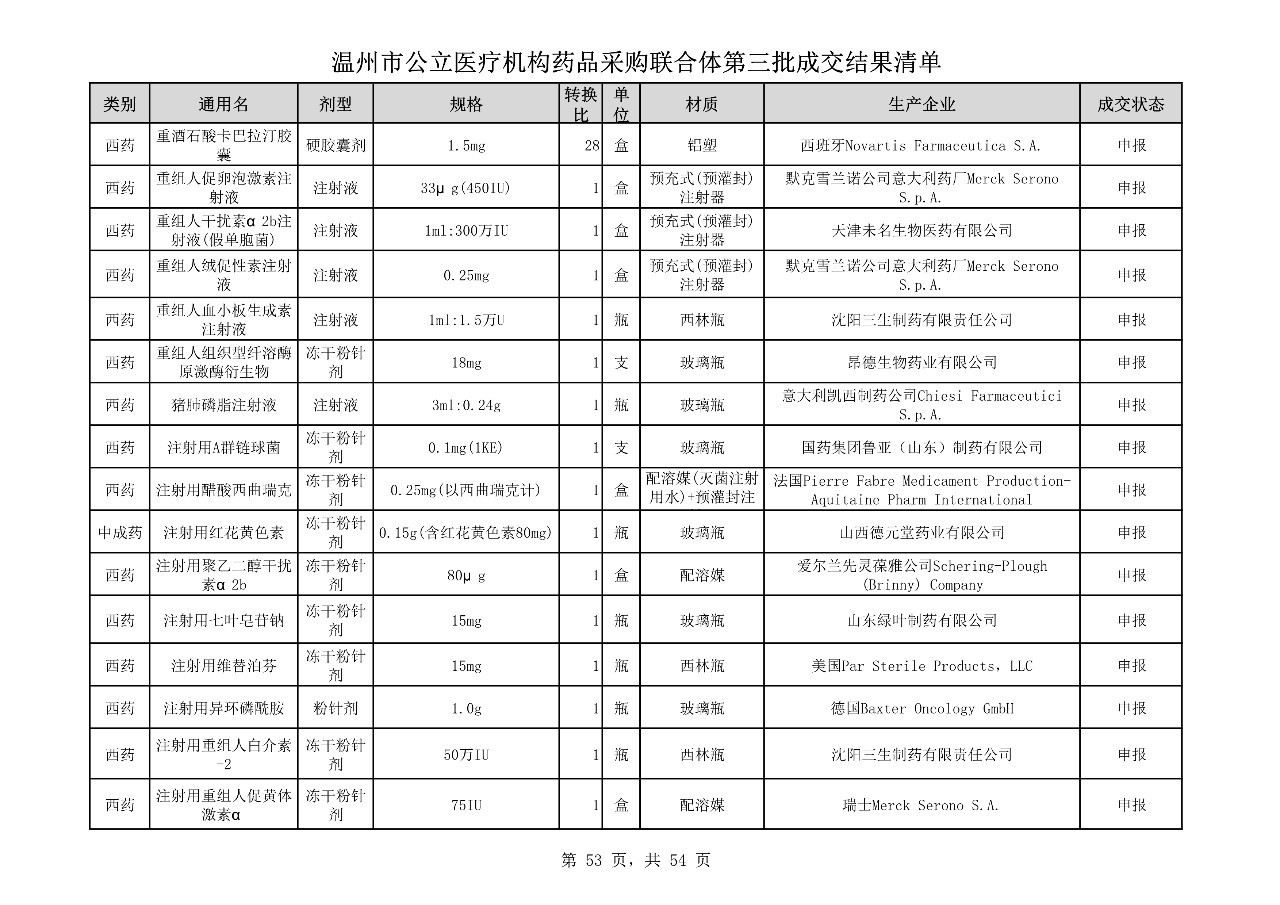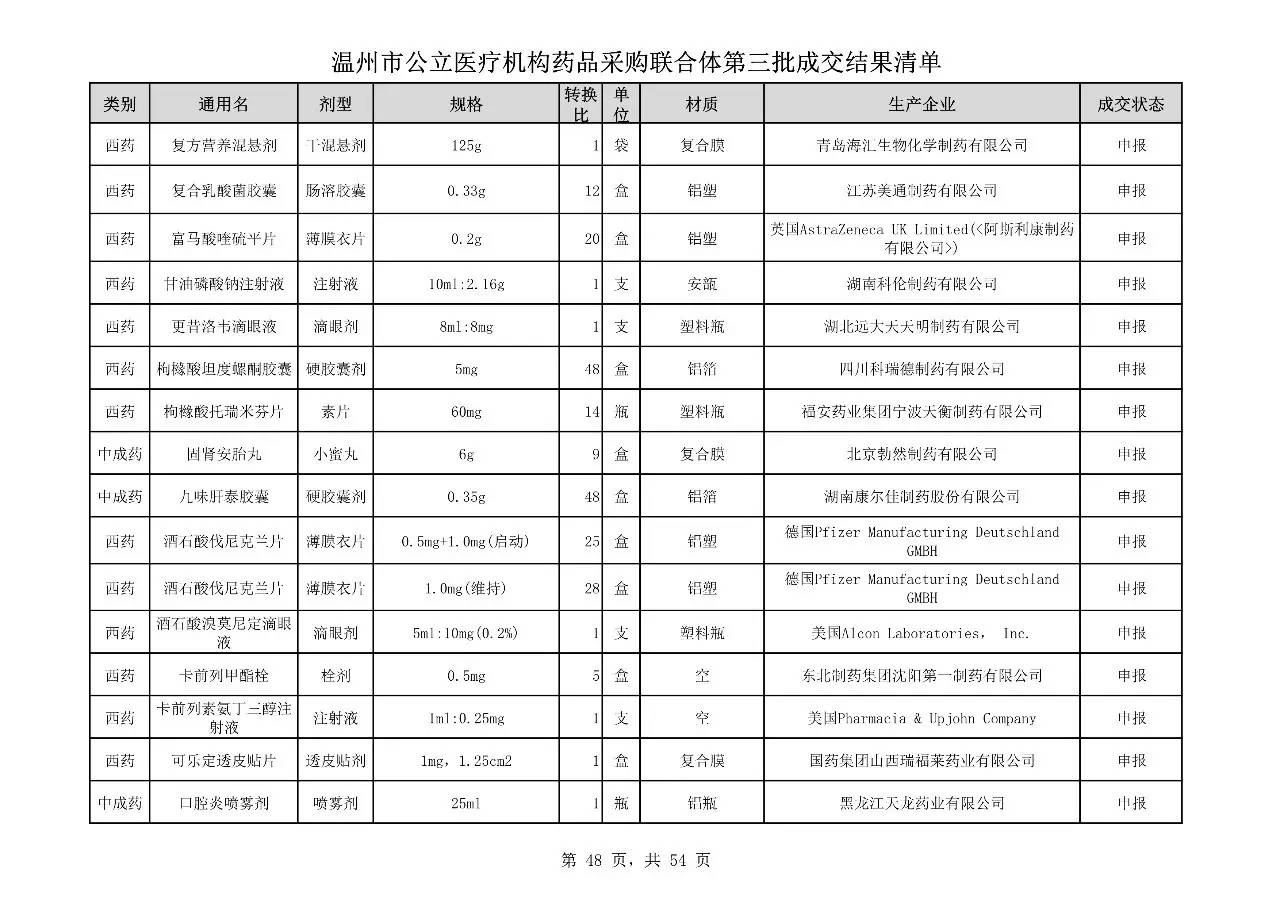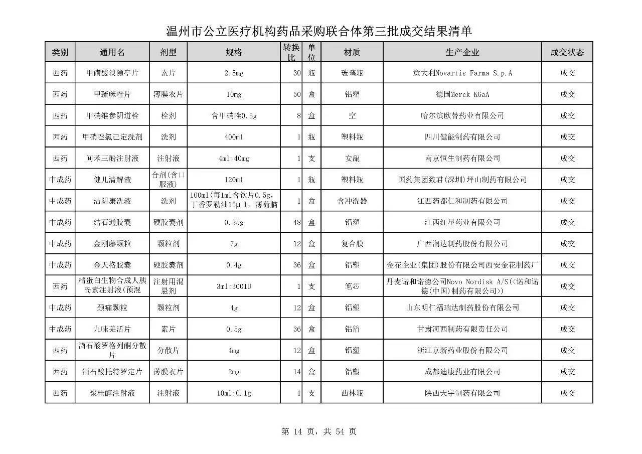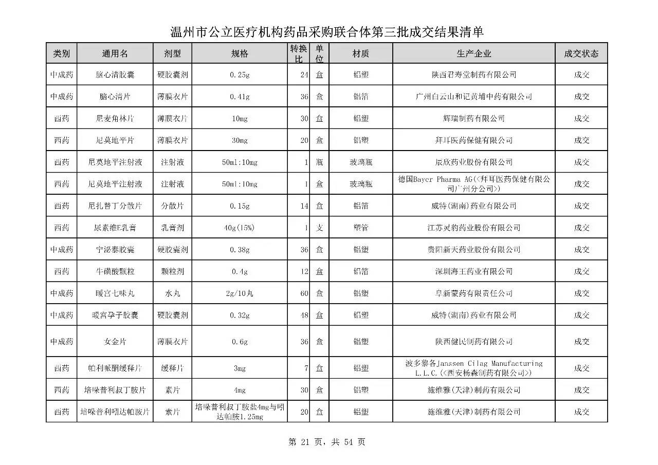 重磅:溫州市公立醫(yī)療機(jī)構(gòu)藥品采購(gòu)聯(lián)合體第三批采購(gòu)的成交結(jié)果公告