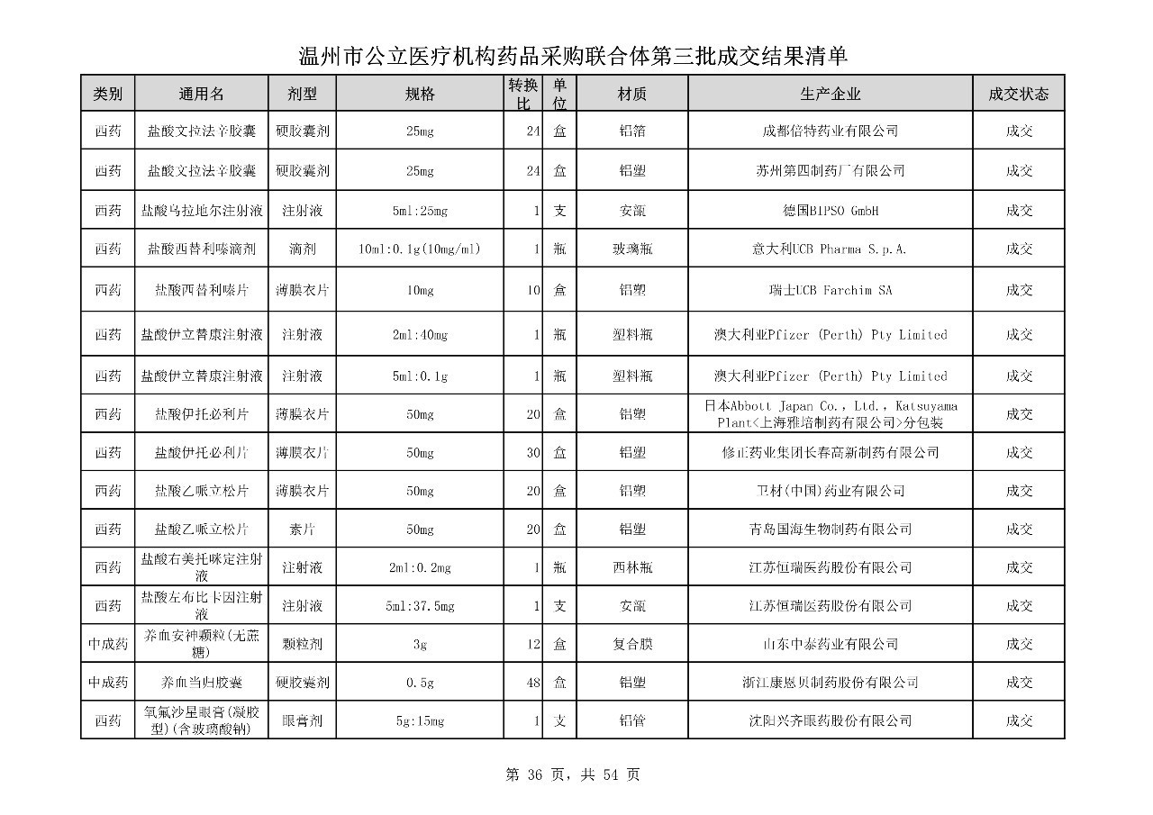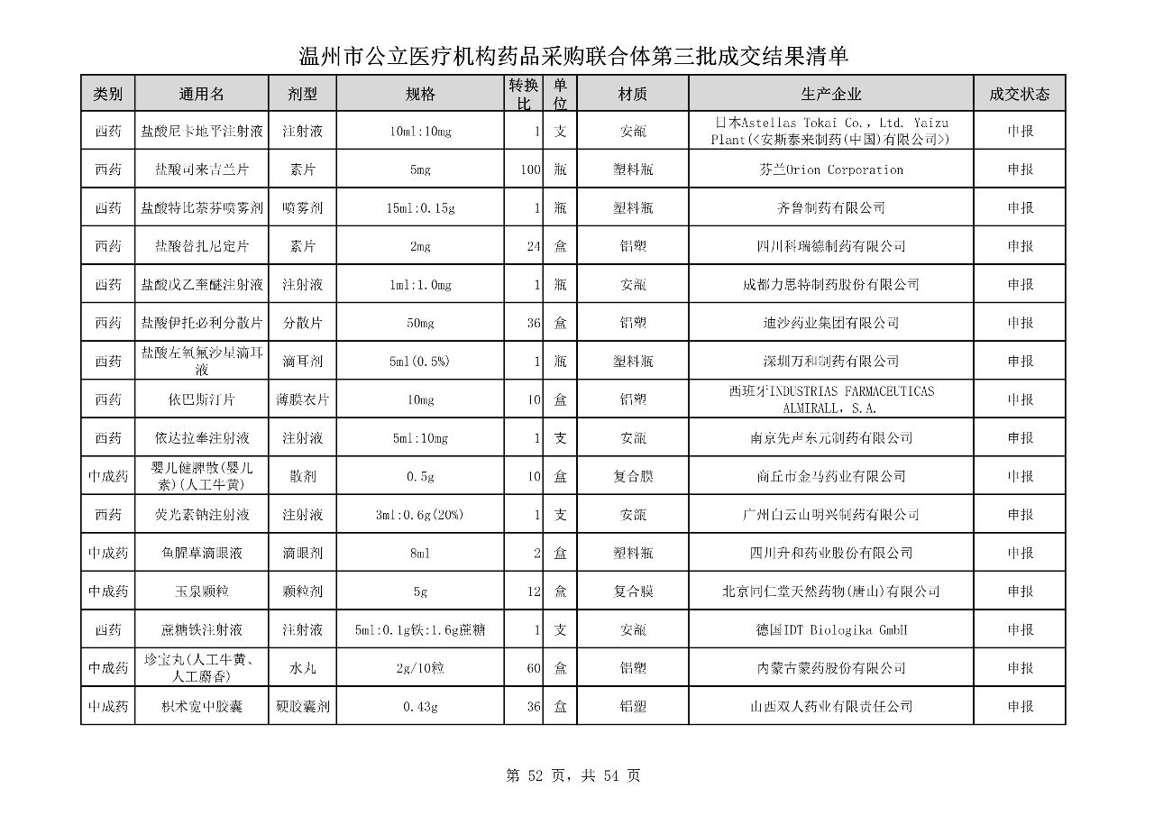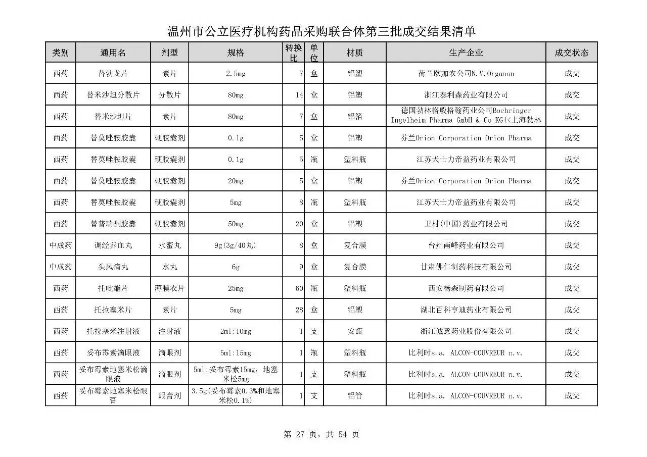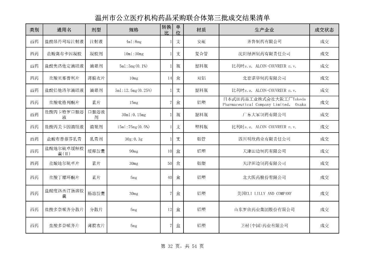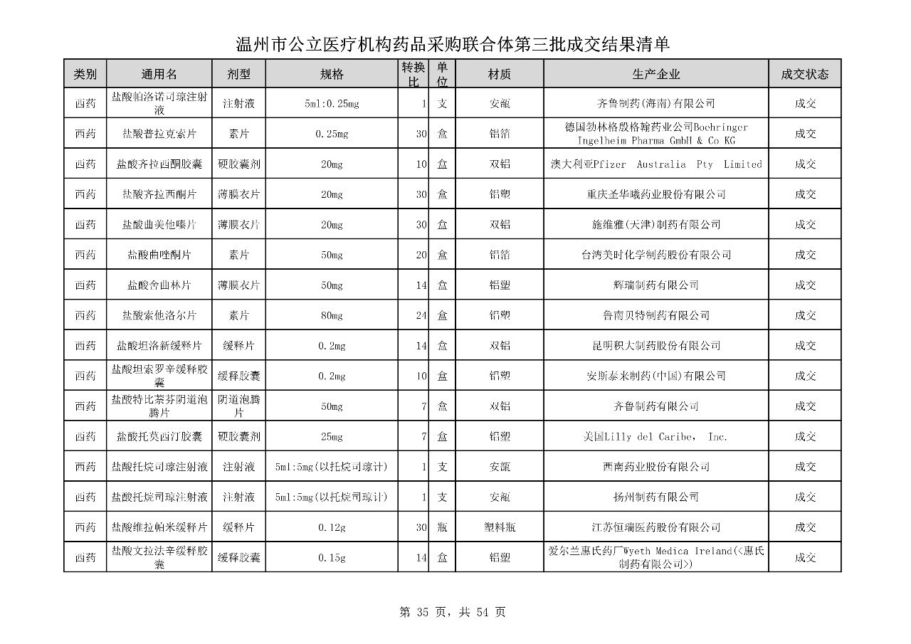 重磅:溫州市公立醫(yī)療機(jī)構(gòu)藥品采購(gòu)聯(lián)合體第三批采購(gòu)的成交結(jié)果公告