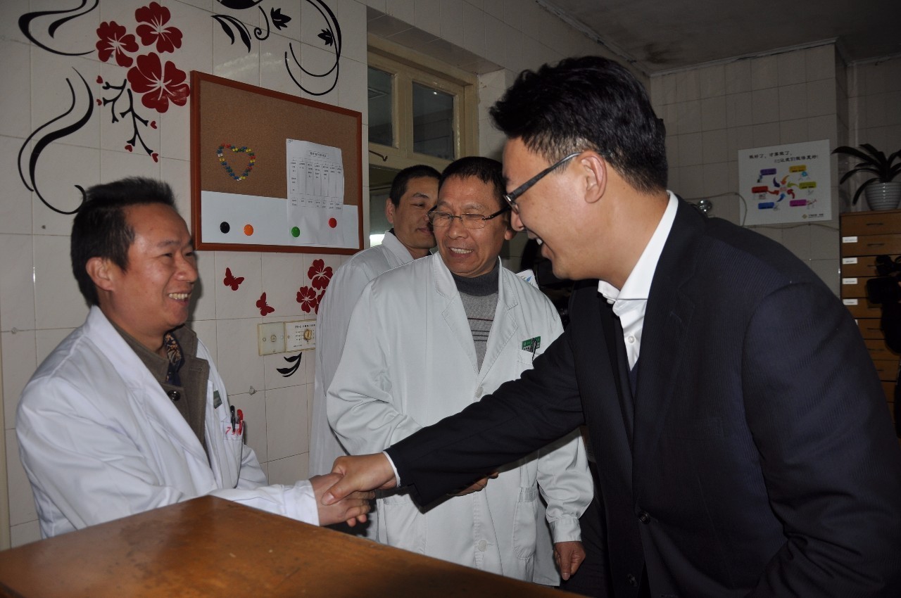楊勇書記一行人在縣委辦華祥平主任、衛(wèi)計局章武科局長、葉小杰副局長、我院翁責(zé)茗院長等領(lǐng)導(dǎo)的陪同下,先后來到縣第一醫(yī)院急診科和骨科,與醫(yī)務(wù)人員熱情交談并親切拜年,使在場醫(yī)務(wù)人員倍感溫暖。在交談過程中,楊書記還詳細(xì)詢問了兩個科室的日常工作情況,對醫(yī)務(wù)人員堅韌、辛勤的敬業(yè)精神表示贊賞!