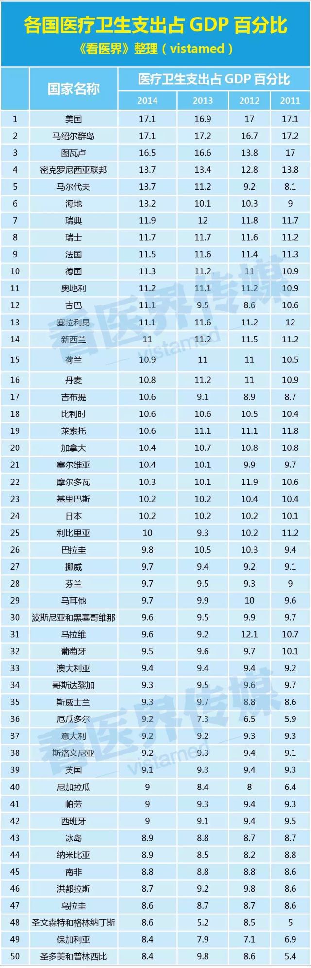 榜單 | 世界各國(guó)醫(yī)療衛(wèi)生投入排行榜 中國(guó)竟然排在……