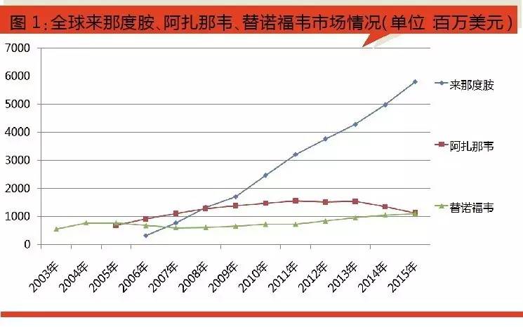 替諾福韋由美國吉利德公司開發(fā),為一種新型核苷酸類逆轉(zhuǎn)錄酶抑制劑,2001年經(jīng)美國FDA批準(zhǔn)用于治療艾滋病,2008年先后被歐盟和美國FDA批準(zhǔn)用于治療乙型肝炎,商品名為“Viread”。替諾福韋是吉利德的明星品種,該藥是目前治療艾滋病和乙肝的特效藥。替諾福韋在乙肝的轉(zhuǎn)陰率、耐藥問題等方面相比于主要競品阿德福韋酯、替比夫定和恩替卡韋都有一定優(yōu)勢。