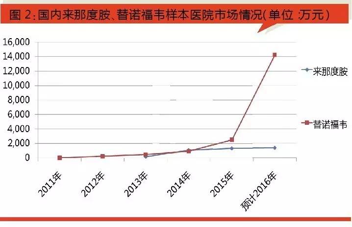 據(jù)國內(nèi)樣本醫(yī)院數(shù)據(jù),2016年前三季度,來那度胺銷售額為1042萬元,替諾福韋銷售額為8002萬元。其中,替諾福韋為2016年國內(nèi)醫(yī)藥市場增速較為突出的產(chǎn)品,主要與葛蘭素替諾福韋2016年大幅降價有關(guān),預(yù)計(jì)替諾福韋國內(nèi)樣本醫(yī)院銷售額有望過億元。