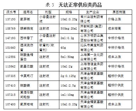 部分企業(yè)反饋原料價格上漲、生產(chǎn)線改造、成本增加、供貨價高于我省中標(biāo)價,從而無法按中標(biāo)價正常供應(yīng)(詳見表3)。