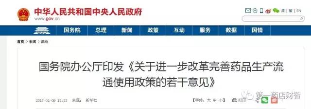 今日,中央全面深化改革領(lǐng)導(dǎo)小組討論通過、國務(wù)院重點關(guān)注的醫(yī)藥行業(yè)最重磅政策——《國務(wù)院辦公廳關(guān)于進一步改革完善藥品生產(chǎn)流通使用政策的若干意見》(國辦發(fā)〔2017〕13號,以下簡稱《若干意見》)正式發(fā)布!