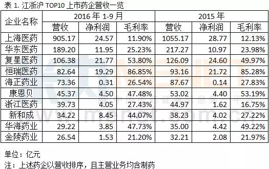 浙江醫(yī)藥、新和成、華東醫(yī)藥、海正藥業(yè)、康恩貝在2016年1-9月的凈利潤已超過2015年全年;上海醫(yī)藥與復(fù)星醫(yī)藥凈利潤均超過20億元,分別同比增長12.78%和15.12%;凈利潤在10億-20億元的有華東醫(yī)藥和恒瑞醫(yī)藥2家。