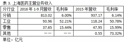 據(jù)統(tǒng)計數(shù)據(jù)顯示,2016年1-9月,上海醫(yī)藥營業(yè)收入已達905.17億元,在行業(yè)中獨占鰲頭,全年營收將有望突破千億;營業(yè)收入在100億-200億元的有2家,50億-100億元的有2家,10億-50億元的有5家。