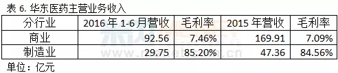 2016年上半年,華東醫(yī)藥營收122.44億元,歸屬于母公司的凈利潤8.23億元,其中,制造業(yè)實現(xiàn)營收29.75億元;2015年,營業(yè)收入217.27億元,歸屬于母公司的凈利潤10.97億元,其中,制造業(yè)實現(xiàn)營收47.36億元,同比增長29%。