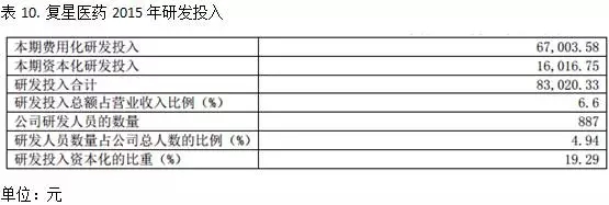復(fù)星醫(yī)藥繼續(xù)加大研發(fā)投入,重點推進生物類似藥和創(chuàng)新藥的研發(fā)。2016年上半年,藥品制造與研發(fā)板塊的研發(fā)費用為24,254.50萬,占藥品制造與研發(fā)板塊業(yè)務(wù)收入的5%。2015年研發(fā)支出67,003.58萬元,同比增長18.75%,其中:藥品制造與研發(fā)板塊研發(fā)費用53,758.51萬元,占該板塊收入的6%。