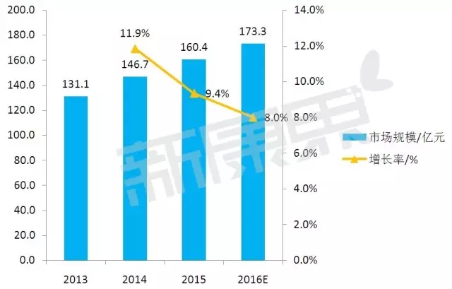 精神病,是指在各種生物學(xué)、心理學(xué)以及社會環(huán)境因素影響下,大腦功能失調(diào),導(dǎo)致認(rèn)知、情感、意志和行為等精神活動出現(xiàn)不同程度障礙為臨床表現(xiàn)的疾病。據(jù)中康CMH監(jiān)測數(shù)據(jù)顯示,2015年精神安定類藥物市場規(guī)模達(dá)160.4億元,市場規(guī)模增長率達(dá)到9.4%,2016年規(guī)模將超過173億元。