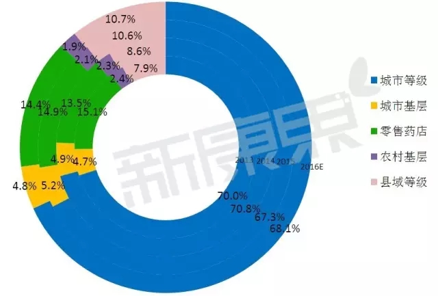 中康CMH數(shù)據(jù)顯示, 精神安定類藥物2015年在城市等級的規(guī)模達(dá)107.9億元,占比為67.3%,但2015年的市場份額比2014年下降了3.5個百分點(diǎn),2016年將有小幅上升。精神安定類藥物在2015年零售渠道的規(guī)模達(dá)23.9億元,占比為14.9%。隨著基層醫(yī)療政策的執(zhí)行,如基層首診、分級診療等,精神安定類藥物在基層醫(yī)院、縣域醫(yī)院終端及零售藥店的市場潛力增大,規(guī)模將會呈現(xiàn)增長趨勢,迎來更好的發(fā)展機(jī)會。