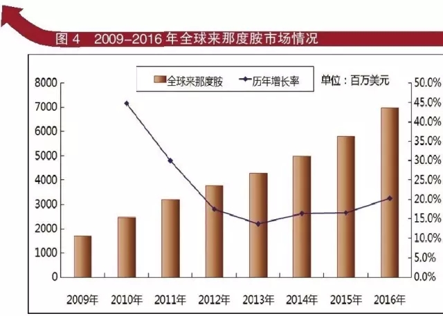 來那度胺是美國新基公司開發(fā)的新一代血液病治療藥物。作為后起之秀的新基公司,依靠來那度胺占據(jù)美國醫(yī)藥界的一席之地。據(jù)新基2016年財報分析,來那度胺憑借強勁增長態(tài)勢,全年取得凈銷售收入111.85億美元,相比2015年同期的91.6億美元增長20%,已成功進入生物制藥公司百億美元俱樂部。來那度胺2016年銷售收入已經達到70億美元,該藥2015年2月被批準為多發(fā)性骨髓瘤的一線療法,而后繼上市的藥物也多要求與來那度胺聯(lián)用,這都大大增加了來那度胺的目標患者。來那度胺已成為全球最受關注的重磅產品之一。