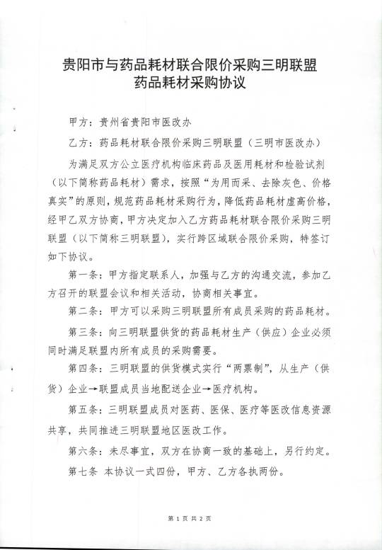 2017年2月15日,貴陽市與三明市簽訂藥品耗材聯(lián)合限價采購協(xié)議,成為聯(lián)合限價采購三明聯(lián)盟的新成員。