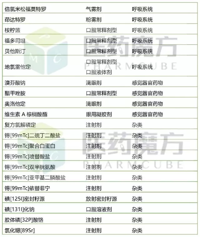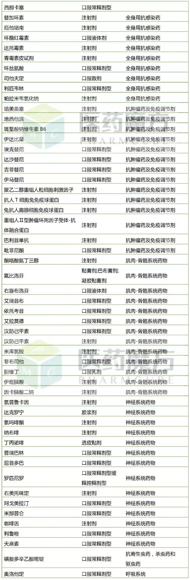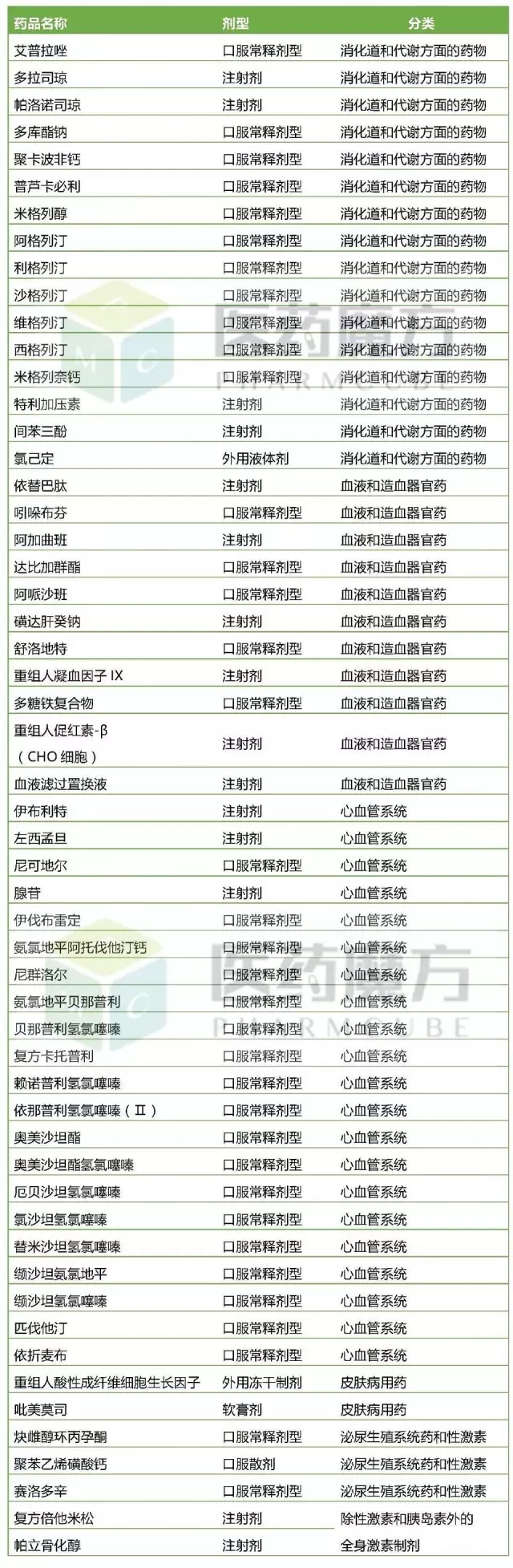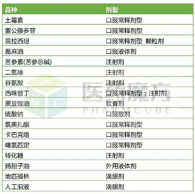 注:雷公藤多苷從西藥目錄轉(zhuǎn)移到了中成藥目錄