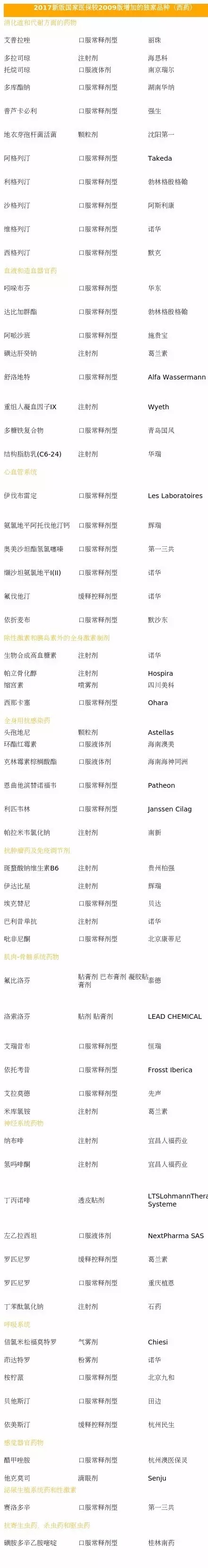 2017醫(yī)保目錄增減清單(西藥篇及獨家品種)