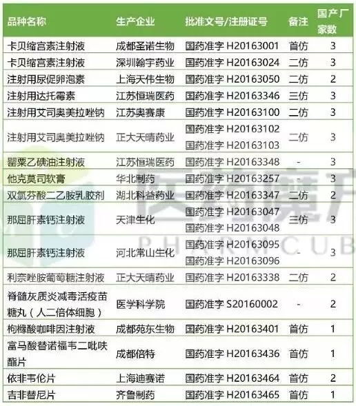 2016年CFDA批準(zhǔn)上市的重磅品種