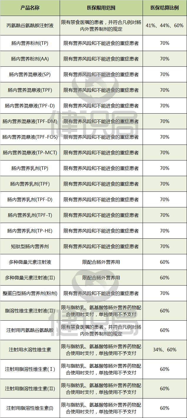 營養(yǎng)類產品同樣也被限制使用,醫(yī)保結算比例在30%~70%之間。