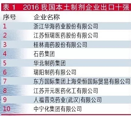 【亮點】2016西藥制劑出口美國增長41.7%:本土企業(yè)為主力,華海領銜十強