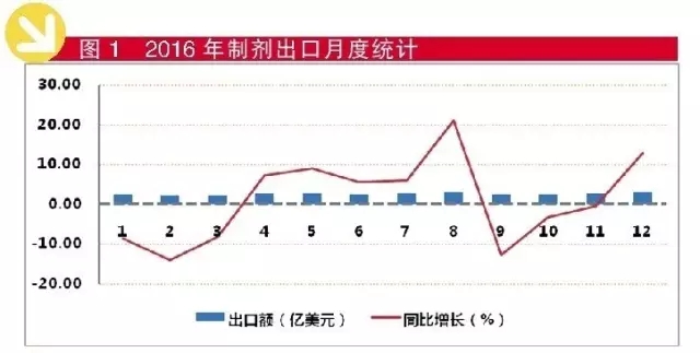受主要經(jīng)濟體需求不振,一些新興經(jīng)濟體增長動力不足,國內監(jiān)管趨嚴及經(jīng)濟下行壓力影響,我國醫(yī)藥外貿(mào)發(fā)展整體進入低速增長期,2016年同比增長不足1%。而受累于世界經(jīng)濟周期性影響及跨國企業(yè)業(yè)績下滑,我國制劑外貿(mào)也蒙上了一層陰影,2016年同比僅小幅增長3.8%,但本土制劑企業(yè)的表現(xiàn)有向好之勢。