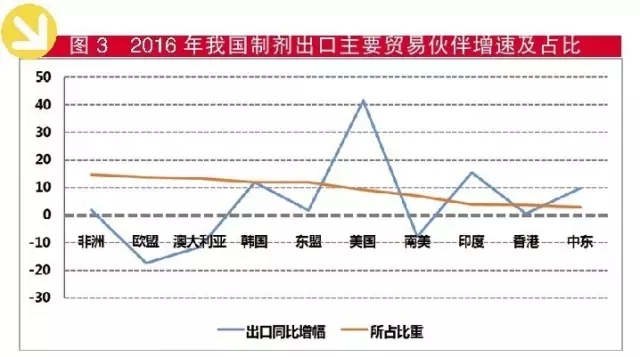 相比之下,保稅區(qū)倉儲轉口貿(mào)易出口同比大幅下跌44%,占制劑整體出口的12.95%,同比2015年下降了10個百分點。一般貿(mào)易出口則基本與去年持平。