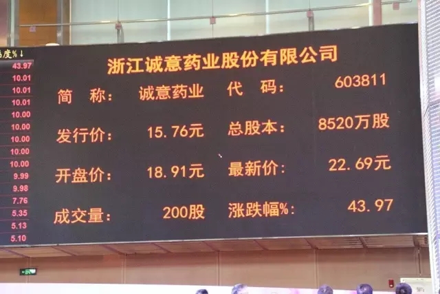 【直擊】開門紅!誠意藥業(yè)成功登陸上交所主板