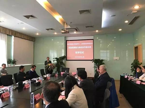 2017年3月7日,浙江省藥品認(rèn)證檢查中心與上海藥品審評(píng)核查中心在上海張江共同舉行了浙滬兩?。ㄊ校┧幤窓z查能力建設(shè)合作備忘錄簽訂儀式,浙江省局邵元昌副局長(zhǎng)、藥品安監(jiān)處陳月華處長(zhǎng)、浙江省藥品認(rèn)證檢查中心沈黎新主任、翁曉明副主任等一行11人以及上海市局衣承東副局長(zhǎng)、藥品安監(jiān)處李萍副處長(zhǎng)、上海藥品審評(píng)核查中心陸峰書(shū)記、張華副主任等出席了簽訂儀式。