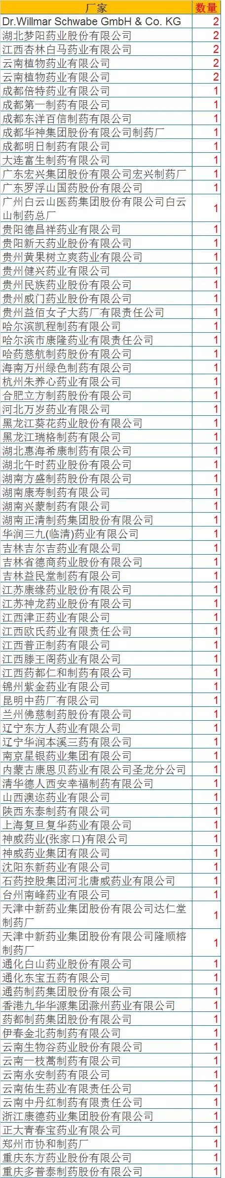 有【獨家劑型】中成藥品種進入2017醫(yī)保目錄的廠家見下表: