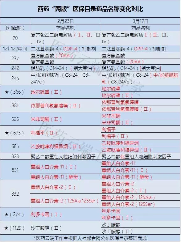 2.23版與3.17版醫(yī)保目錄藥品名稱(chēng)變化對(duì)比表(西藥部分)