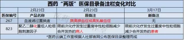 2.23版與3.17版醫(yī)保目錄備注欄變化對(duì)比表(西藥部分)