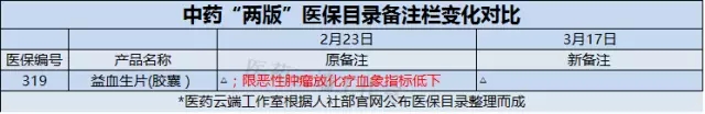 2.23版與3.17版醫(yī)保目錄備注欄變化對(duì)比表(中藥部分)