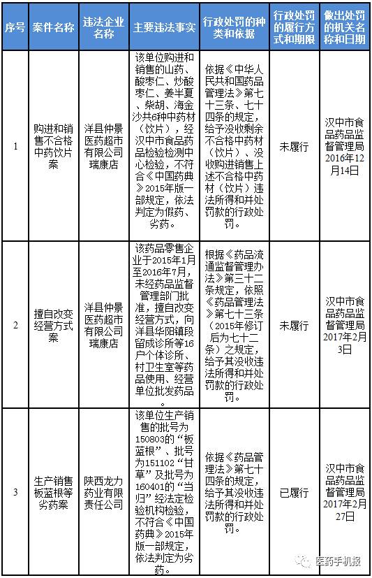 具體來(lái)看,洋縣仲景醫(yī)藥超市有限公司瑞康店涉及2起案件,分別為購(gòu)進(jìn)和銷售不合格中藥飲片案、擅自改變經(jīng)營(yíng)方式案;陜西龍力藥業(yè)有限責(zé)任公司則因生產(chǎn)銷售板藍(lán)根等劣藥案被行政處罰。