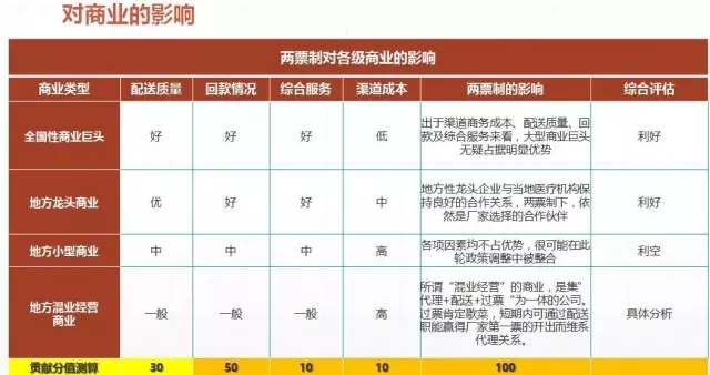 2.對(duì)商業(yè)的影響:兩票制的這種影響是與當(dāng)前的招標(biāo)采購(gòu)、二次議價(jià)、大量采購(gòu)是一起發(fā)揮作用的,換言之,兩票制對(duì)我們這個(gè)行業(yè)最大的影響是對(duì)合規(guī)觀念的影響。兩票制認(rèn)定方法對(duì)產(chǎn)品渠道和分銷(xiāo)方式設(shè)置具有巨大影響;商業(yè)企業(yè)在市場(chǎng)格局中影響力發(fā)生變化,大型商業(yè)對(duì)市場(chǎng)上下游議價(jià)能力大幅增強(qiáng)。