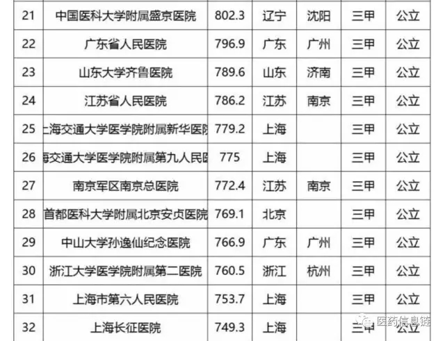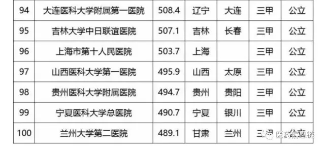 中國(guó)頂級(jí)醫(yī)院百?gòu)?qiáng)榜