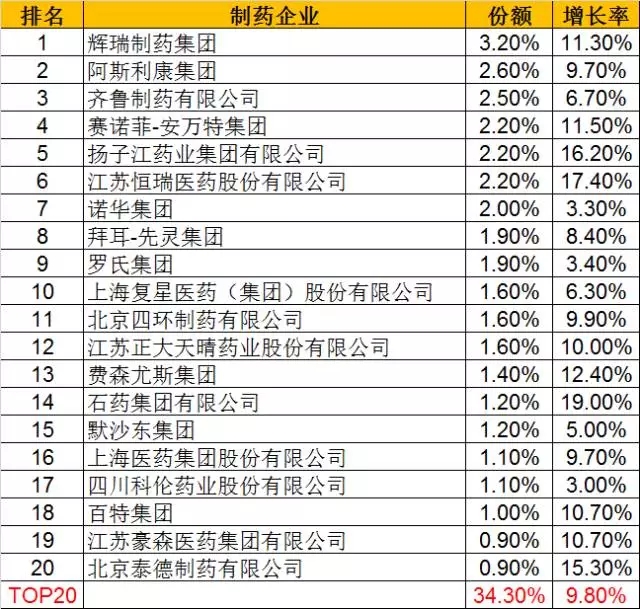 2016年醫(yī)院藥品采購額排名前20名制藥企業(yè)