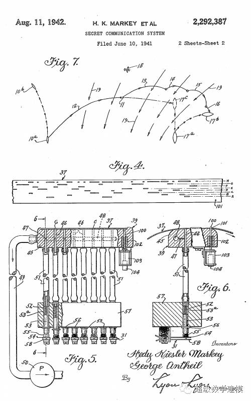 上圖是海蒂·拉瑪在1941年申請的一項專利技術,據(jù)說靈感來自于音符。其中的無線電跳頻技術,成為今天 CDMA 和 WiFi 的基礎。所以大家把拉瑪親切地稱為:“CDMA 之母”、“WiFi 之母”。