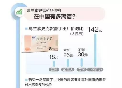 據(jù)當(dāng)時的新華社報(bào)道,“以知名藥品賀普丁為例,在中國的出廠價是142元,而在韓國只有18元,在加拿大不到26元,在英國不到30元,在德國、日本等國家,其出廠價也遠(yuǎn)遠(yuǎn)低于中國。也就是說,購買一盒賀普丁,中國的患者要比其他國家付出高得多的代價”,甚至“該公司在華銷售的藥品價格最高可達(dá)其他國家的7倍”。