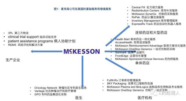 全球最大的醫(yī)藥商業(yè)公司麥克森(McKesson)在自己的2016年報(bào)上這樣定位了企業(yè)的發(fā)展定位:“作為一個(gè)使命在身的企業(yè),麥克森每一天都在幫助客戶提升他們的業(yè)務(wù)健康,讓他們?cè)卺t(yī)療健康生態(tài)系統(tǒng)中通過最一流的衛(wèi)生健康服務(wù)和解決方案來更有效工作,付出更好的服務(wù)。”值得一提的是,雖然藥品的分銷為麥克森帶來了超過1800億美元的收入和98%的營業(yè)收入占比,但麥克森在供應(yīng)鏈服務(wù)的基礎(chǔ)之上賦予了藥品分銷更多的含義,麥克森也因此將其分銷業(yè)務(wù)稱為“分銷方案業(yè)務(wù)”,作為其上游企業(yè)客戶的產(chǎn)品全生命周期管理和下游醫(yī)院藥店客戶的病人服務(wù)體系的重要組成部分。