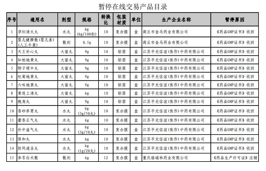 今日(4月6日),浙江省藥械采購(gòu)中心公布一批取消在線交易資格的產(chǎn)品,15個(gè)產(chǎn)品均是中成藥,其中14個(gè)被收回GMP證書,1個(gè)藥品生產(chǎn)許可證被注銷。