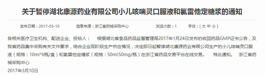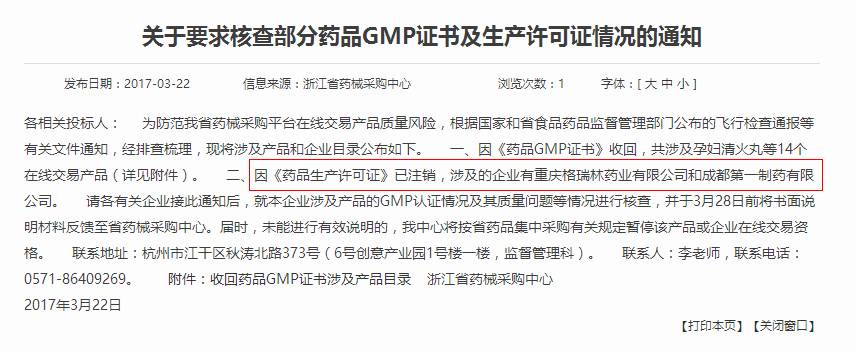 3月22日,浙江省藥械采購(gòu)中心發(fā)布公告,稱根據(jù)國(guó)家和省食品藥品監(jiān)督管理部門公布的飛行檢查通報(bào)等有關(guān)文件通知,要求涉事企業(yè)就本企業(yè)涉及產(chǎn)品的GMP認(rèn)證情況及其質(zhì)量問題等情況進(jìn)行核查,并于3月28日前將書面說(shuō)明材料反饋至省藥械采購(gòu)中心。