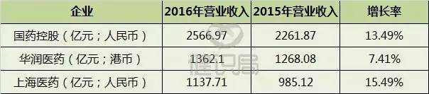 在2016年,這三家藥商的市場(chǎng)規(guī)模均在千億元以上,其中,國(guó)藥控股2016年?duì)I業(yè)收入達(dá)到了2567億,幾乎是亞軍華潤(rùn)經(jīng)營(yíng)業(yè)績(jī)的2倍,成為當(dāng)仁不讓的龍頭。