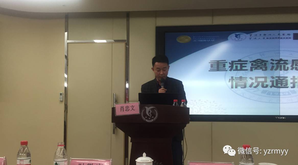 會上,鄞州人民醫(yī)院院長陸勤康代表醫(yī)院禽流感領(lǐng)導(dǎo)小組在會上作了中心發(fā)言。▼