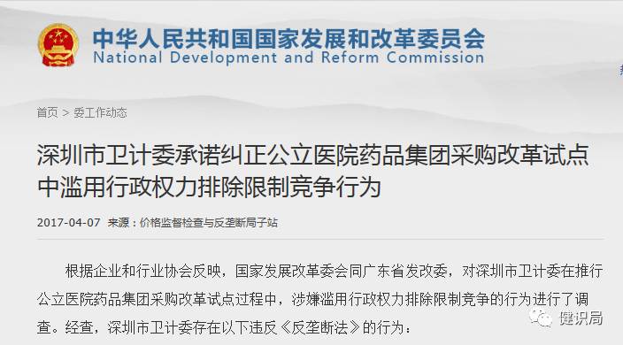 國家發(fā)改委:深圳衛(wèi)計委違法,GPO試點要整改!