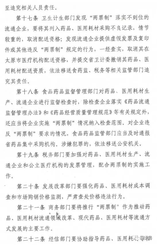 通知第十七條還明確:“對企業(yè)違反‘兩票制’要求的情況,食品藥品監(jiān)督管理部門應(yīng)當(dāng)及時通報省藥品集中采購機構(gòu)。涉嫌犯罪的,依法移送公安機關(guān)。”